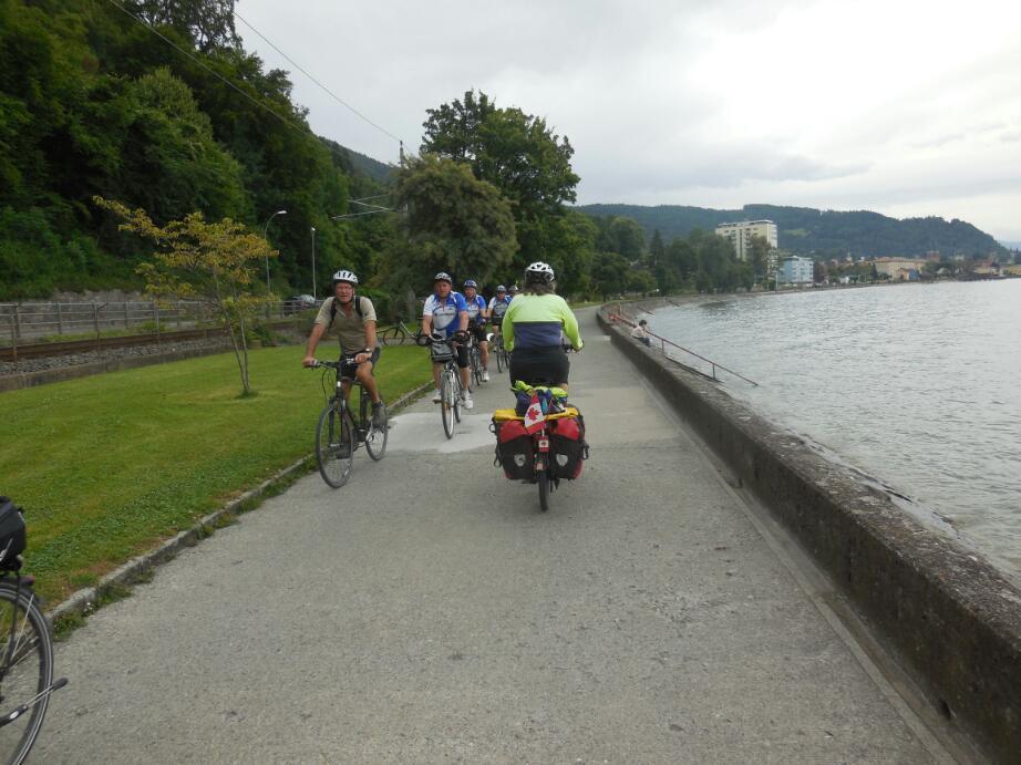 The run to Lindau, on the Bodensee was mainly downhill. Lindau is a city on an island, connected to the shore by two short causeways. One carries cars and bikes and plugs in at one end of the island, and the other carries the train and bikes, and plugs in at the other end. The two are about 1/2 km apart. So we had a quarrel about which one to cross on. Go figure.