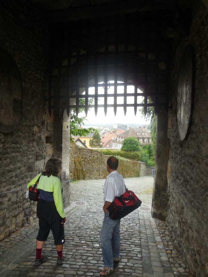 Before heading for Hochst, Bernie took us for a spin around the sights of Bregenz. Bregenz too has a fun pedestrian street, but Bernie also took us up to the Oberstadt - the older part of the city, up the hill. This was an area with old walls and gates, and a church that also featured very old and faded frescoes.