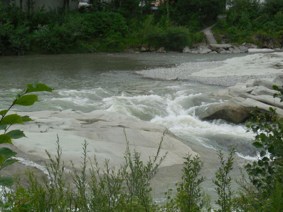 We cycled finally back to Hochst, following Bernie through a variety of short cuts. We passed the Bregenzer Ach, a river that flows over a constantly eroding sandstone base. This has some great swimming spots, and Bernie will stop here on hot Summer days to cool off.