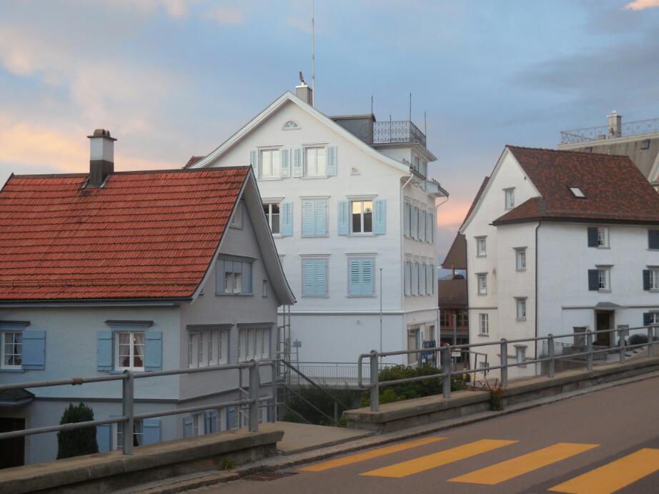 So we jumped in the car and soon crossed the Swiss border, which is formed by a branch of the Rhine. Two border officers, mostly redundant after the Shengen agreement, just waved us on. We climbed then, up to the Appenzell-Ausserrhoden canton. There we could look at not only the unique building style, but also look down on the lake. In the distance was Lindau, and over to the right, Bregenz, with the mountains behind it. From Lindau, moving left, Bernie named all the towns along the lake. Without him, we would never have go up here, nor have been able to appreciate what we were looking at.