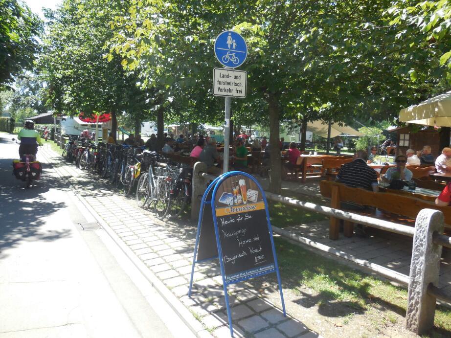 We sailed past the causeway entrance to Lindau island, and of course this time had no reason to go over. From this point on, it was new territory for us. What we found was pretty much a continuous "suburban" kind of development - lots of houses and guest houses, with a sprinkling of restaurants. Sometimes we were near the lake, but much of the time we we just inland enough to not see it. The guesthouses and restaurants were the only commercial development, though, so it is not as if we were wading through lumber yards, supermarkets, or anything like that. On the other hand, the route was often on road in the quiet residential streets, so it is not as if there is a dedicated bike path 'round the lake, either.