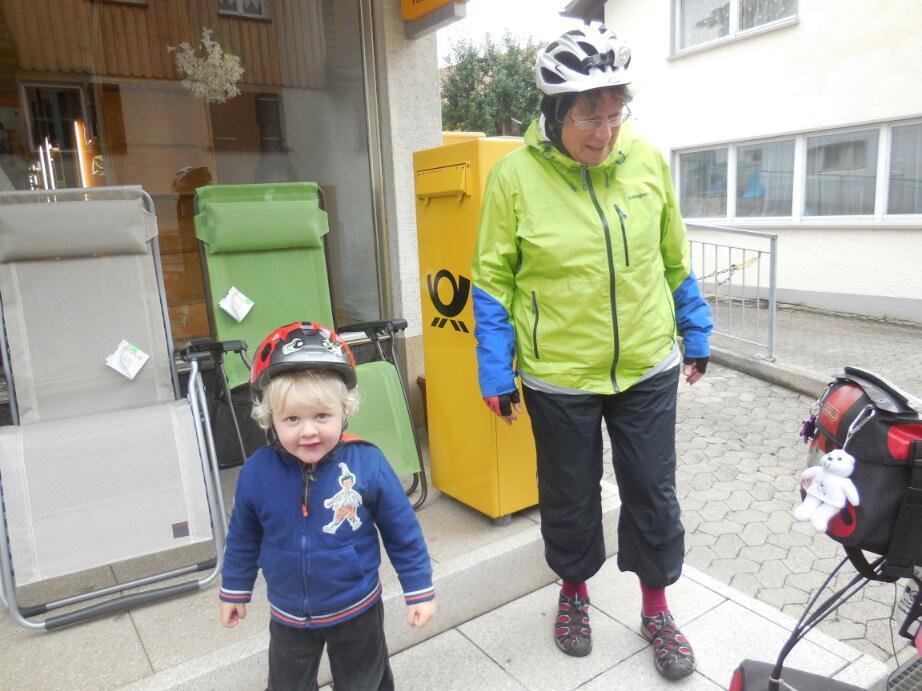 (Technical interlude: The tour came to a screetching halt this morning as I casually shifted into a low gear at the rear while still on the largest ring in the front. This is the position which uses up the most chain. Because first I and then the bike shop in Konstanz had shortened the chain while driving pins in and out and removing damaged plates, there was not enough chain to handle the gear combination. The chain came up taught as a rod, the derailleur was horizontal, and the bike was not going anywhere! I got out my chain tool and drove out a pin, allowing the chain to separate and of course loosen. Then I reassembled the chain, making sure it was on smaller gear wheels. So now it's buy a new chain or always remember not to put the bike into big front to big rear cogs. Grrr.)