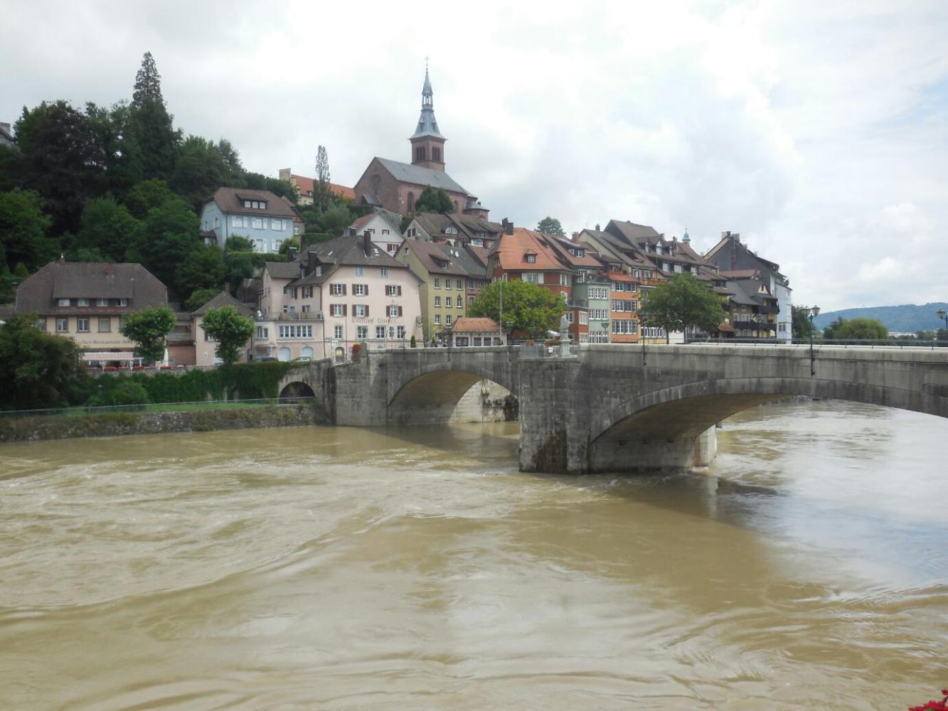 Today we rode through four outstanding towns: Waldshut, Laufenburg, Bad Sackingen, and Rheinfelden. Each one had an interesting altstadt, and deserved to be checked out carefully. We were conflicted, though. Our new friends Jurgen and Susanne at Uhldingen had recommended that we include at least Triberg, among the towns that are deeper into the Black Forest than we had planned to cycle. Their idea was for us to take a train there from Radolfzell. But we did not want to give up on Stein am Rhein or Schaffhausen. So we hatched the plan of meeting up with our friends Didier and Brigitte and going with them by car deeper into the Black Forest. The only thing, we set up to meet with them in Freiburg on Sunday. Now on Saturday we were nowhere near. And we had four altstadts to check out!