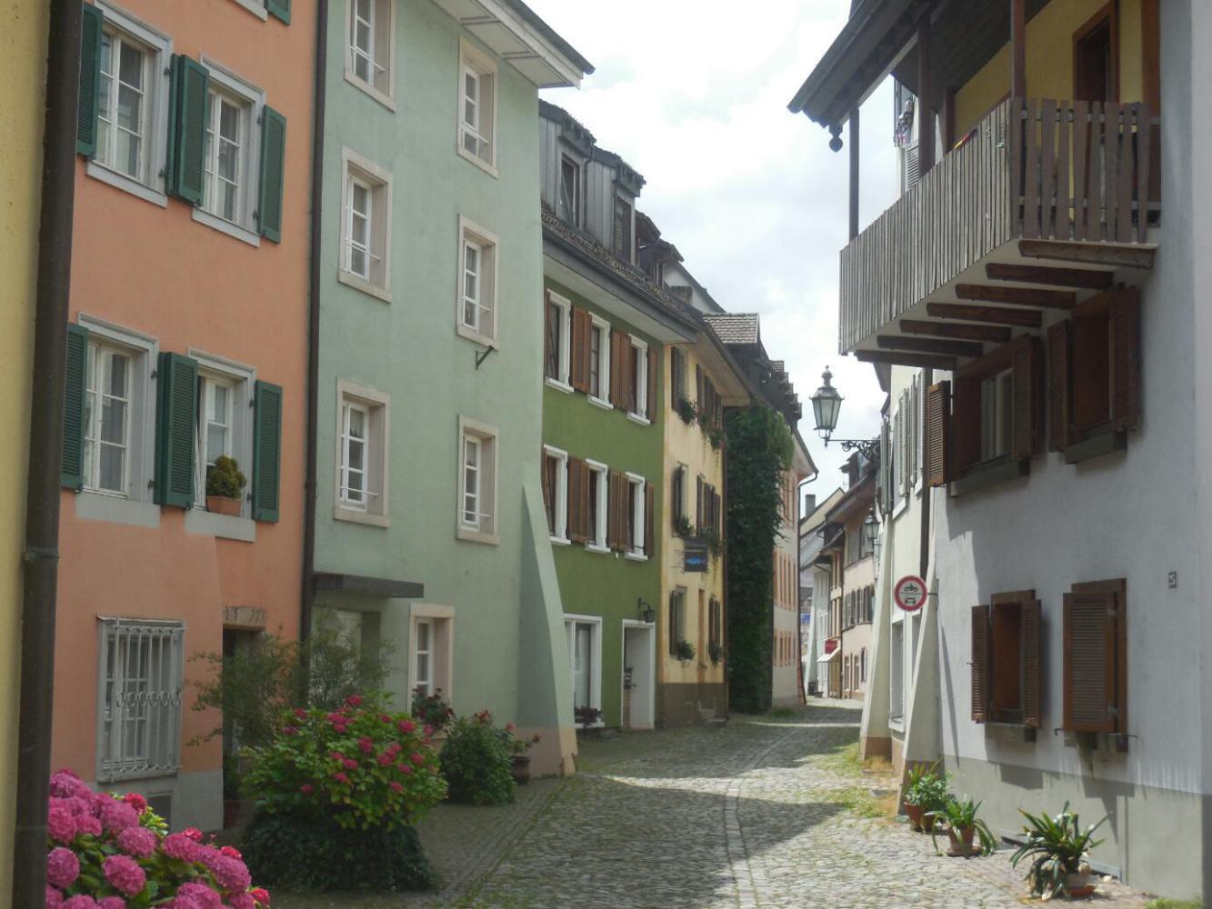 Laufenburg like the other towns is right on the Rhine, but it is in an area of rather steep banks. A main feature is a bridge that joins the Swiss and the German side. The buildings, again, are rather tall, with many smallish windows, and multi colours. From the German side, Dodie said casually "Hey, do you want to go to Switzerland for lunch?". Since I agreed, we pedalled over the bridge, found a bench, and ate our sandwiches! Then we just pedalled back.