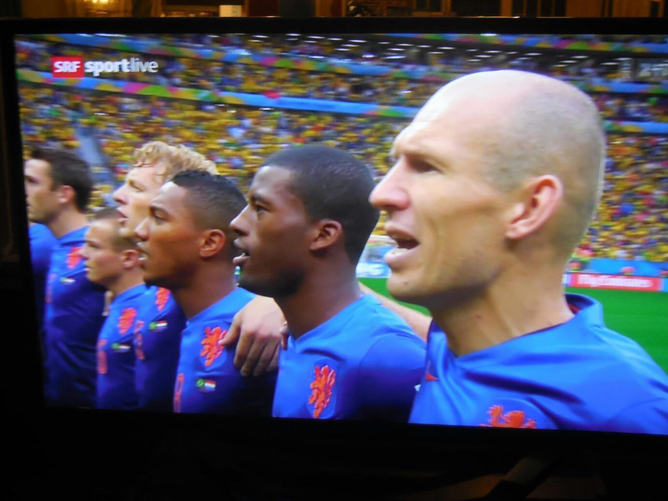 Netherlands team - Robben, in the foreground, actually plays for Bayern Munich. He sure looks like Captain Picard, though. People here are calling him Schwalbe - the swallow - because he goes flying to the ground so much.