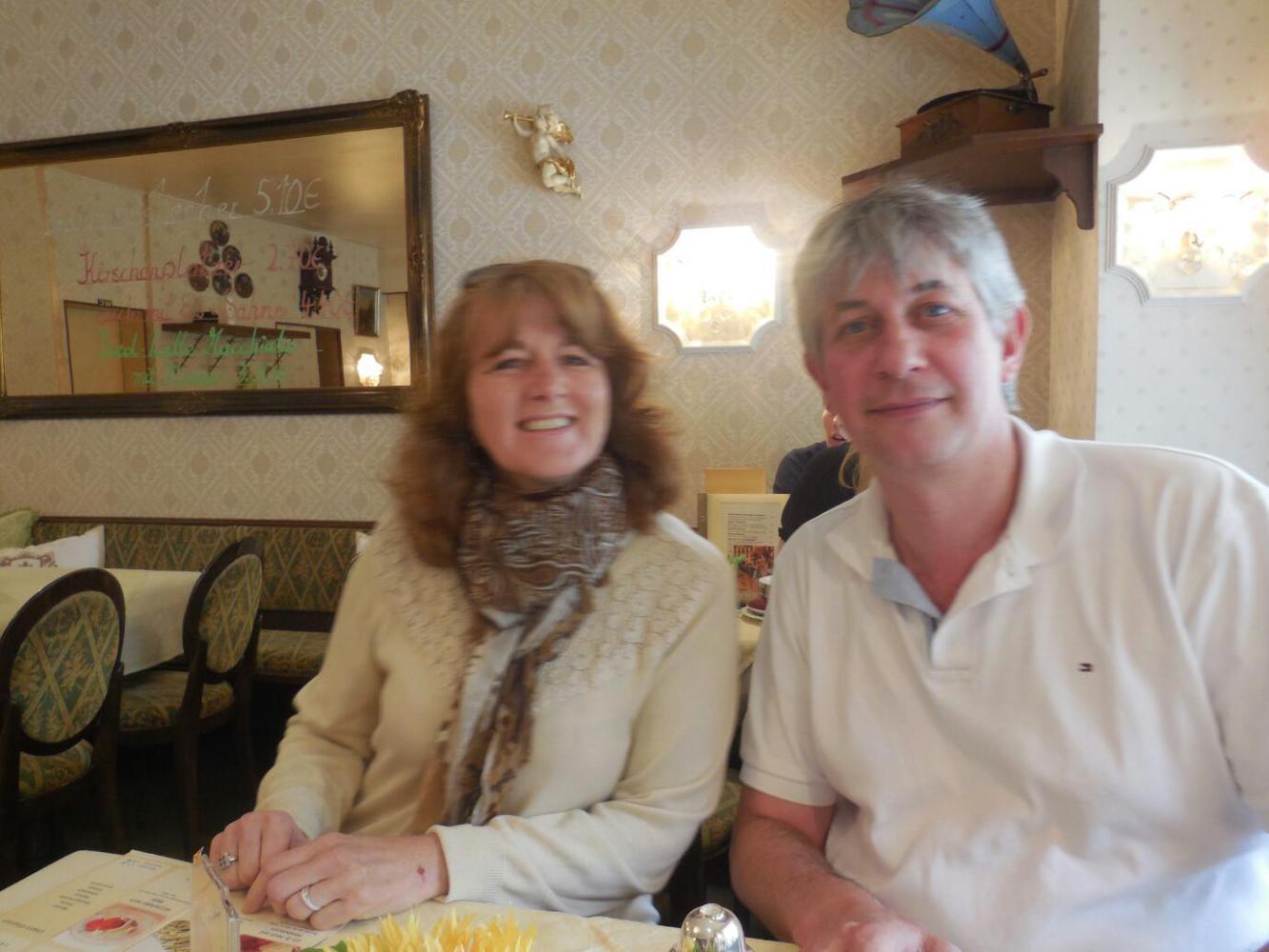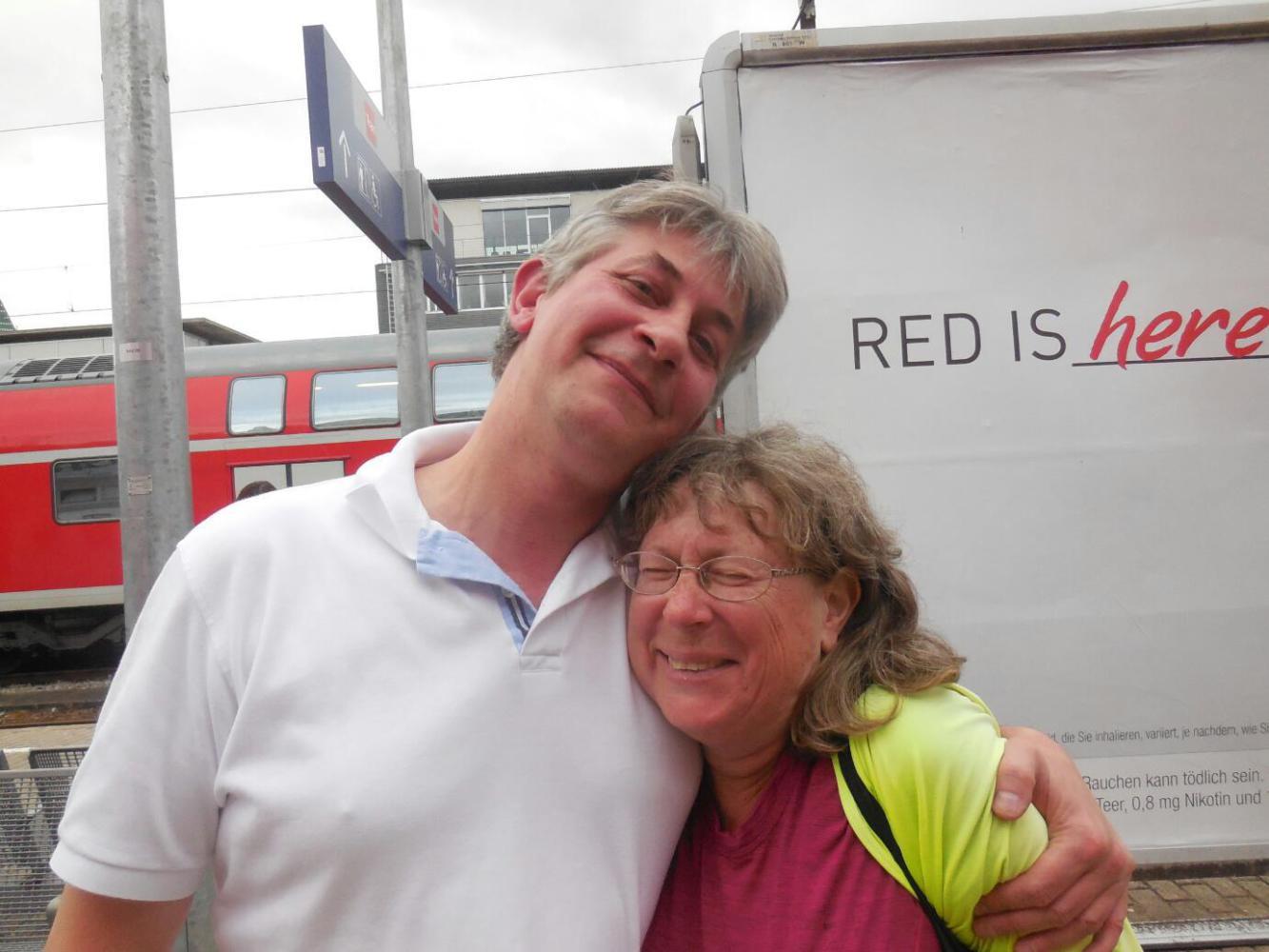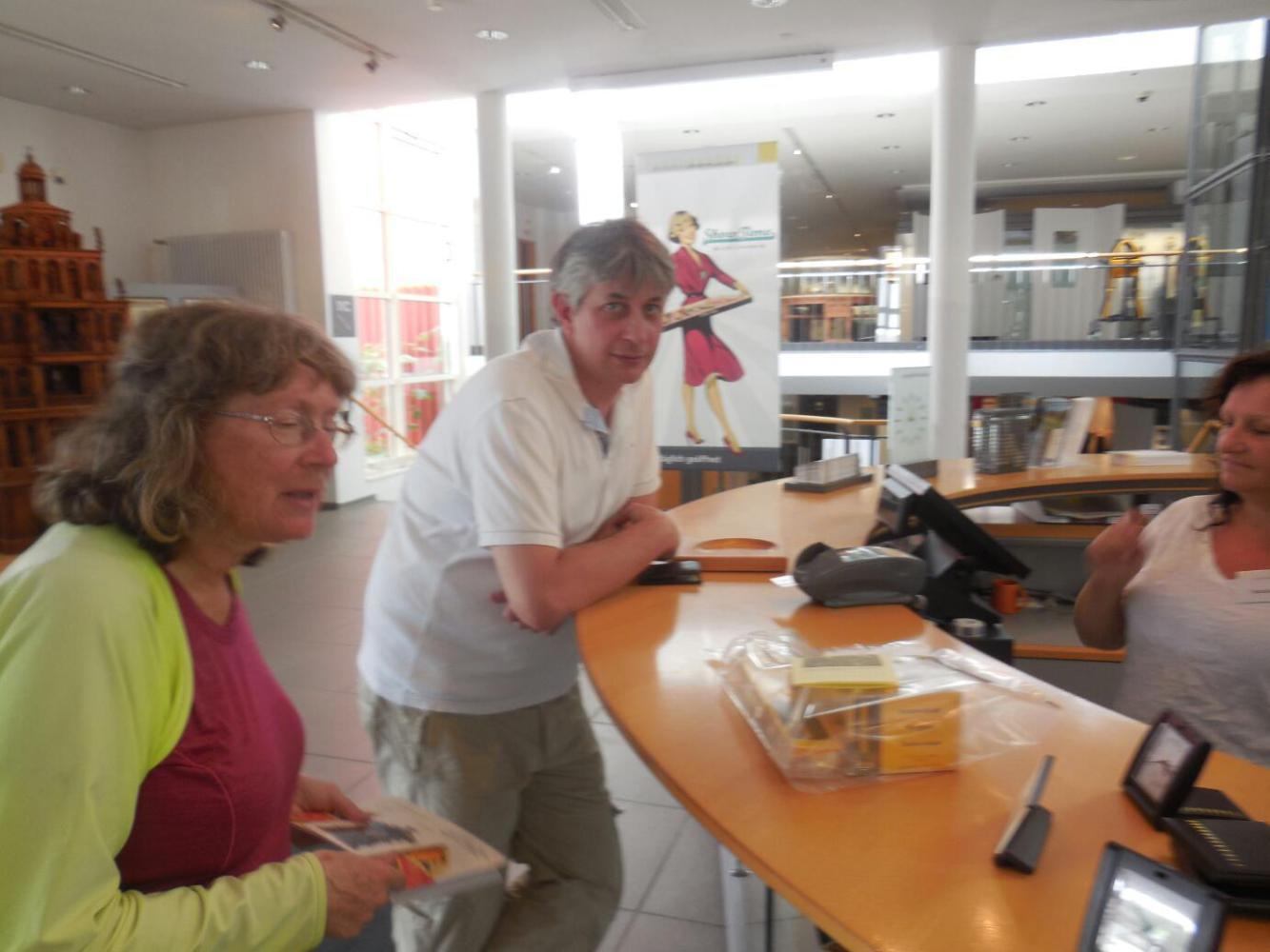 We got to Freiburg quite handily, and an hour before the time we had arranged to meet Didier andBrigitte. We were able to phone Didier and let him know we had arrived. When we spoke, Didier was clearly still in France, and the cell phones connected, though voive quality was poor. However, we later realized,once Didier's phone entered Germany it still was happy enough to makeand receive German calls. The only thing, we are not German - our phone thinks it is from Estonia! Didier arrived about an hour late, and during that time we could not find out where he was. Finally, he sent a text message saying he was at the Stadtmuseum, and well, yes, we did find each other.