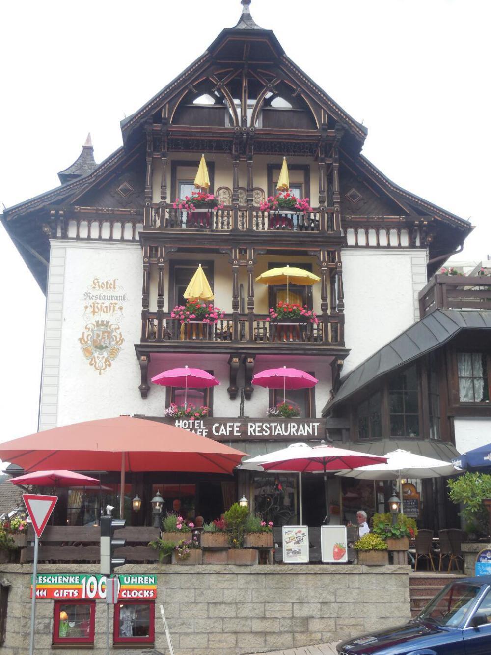 Our first destination was Furtwangen, the heart of the Black Forest clock industry, and the location of the German Clock Museum. Of course, our real first destination was to find something to eat. Didier and Brigitte understood that this had to include Black Forest cake, or Foret Noir, to them. We found a cafe, one of the few places that were open near the museum. They only had sandwich type things, but flammkuchen was also on offer. This is like pizza, but on a thin and crispier base. Frankly, I will take real pizza any time. They of course did also have Black Forest cake. Though "ok", it lacked any liqueur and was overall a bit fluffy. We will clearly have to research a few more!