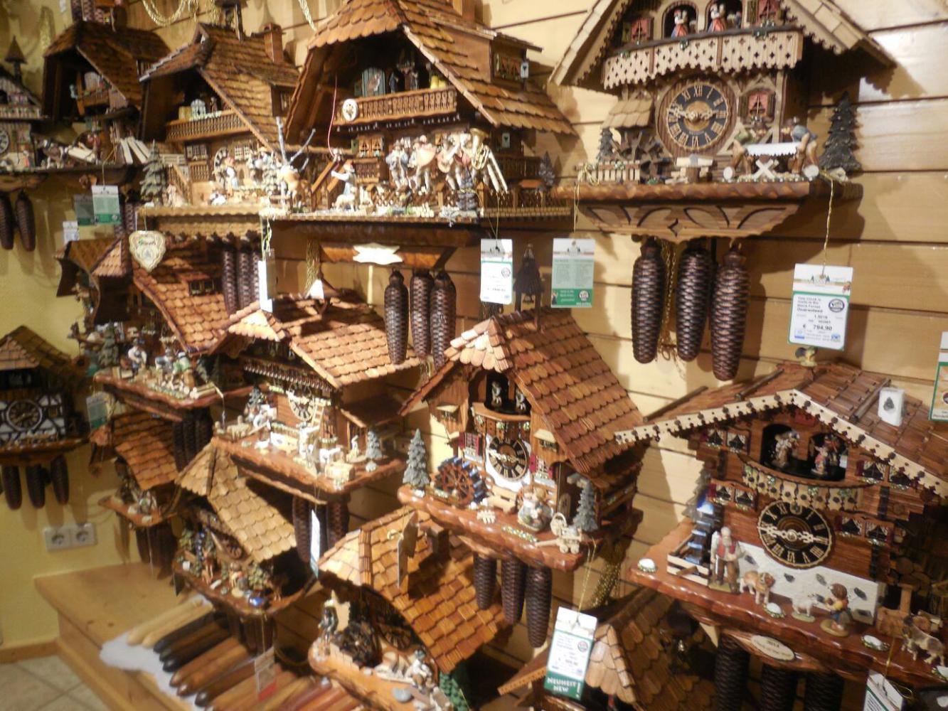 In the gift shop were books on various clock subjects, including a series, at just 5 euros each, on various clock subjects. We bought the cuckoo clock one, and escaped - toward Triberg, cuckoo clock heaven.