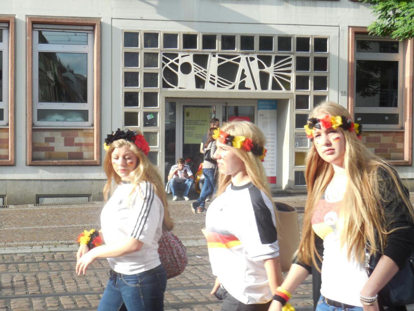 Back in Freiburg, people are gathering, many (most) are sporting some sort of flag decoration.