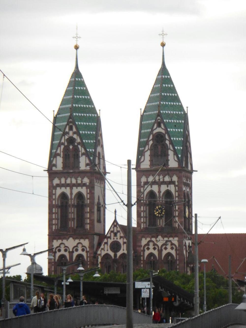 There was no staff at the train station, but several bystanders helped us buy a ticket to Freiburg at a ticket machine. This is not totally an easy thing, even though the machine can be switched to English. The reason is that there are different types of trains and classes of seats and tickets. Also, in this case, the track is under construction north of Basel in the southbound direction, and busses are being used to get people around the obstruction. So our return ticket, which we finally got through an actual live ticket agent in Freiburg, was complicated - involving two busses.