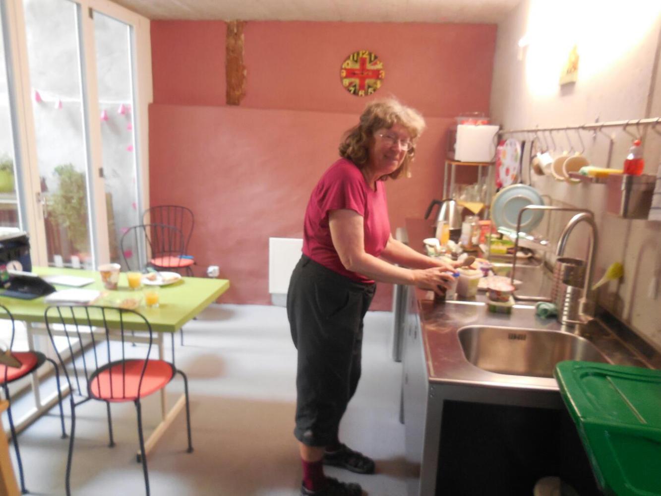 Like the rest of Germany, we were a bit hung over this morning, and only began to stir around 8. I set myself up down in the kitchen room to try filling in the blog from the previous day. Dodie went and collected some of the breakfast foods from where Rosa had set them out in another room, and brought them back to our own "private" kitchen. With our bikes right there beside us, it was all super convenient and pleasant.