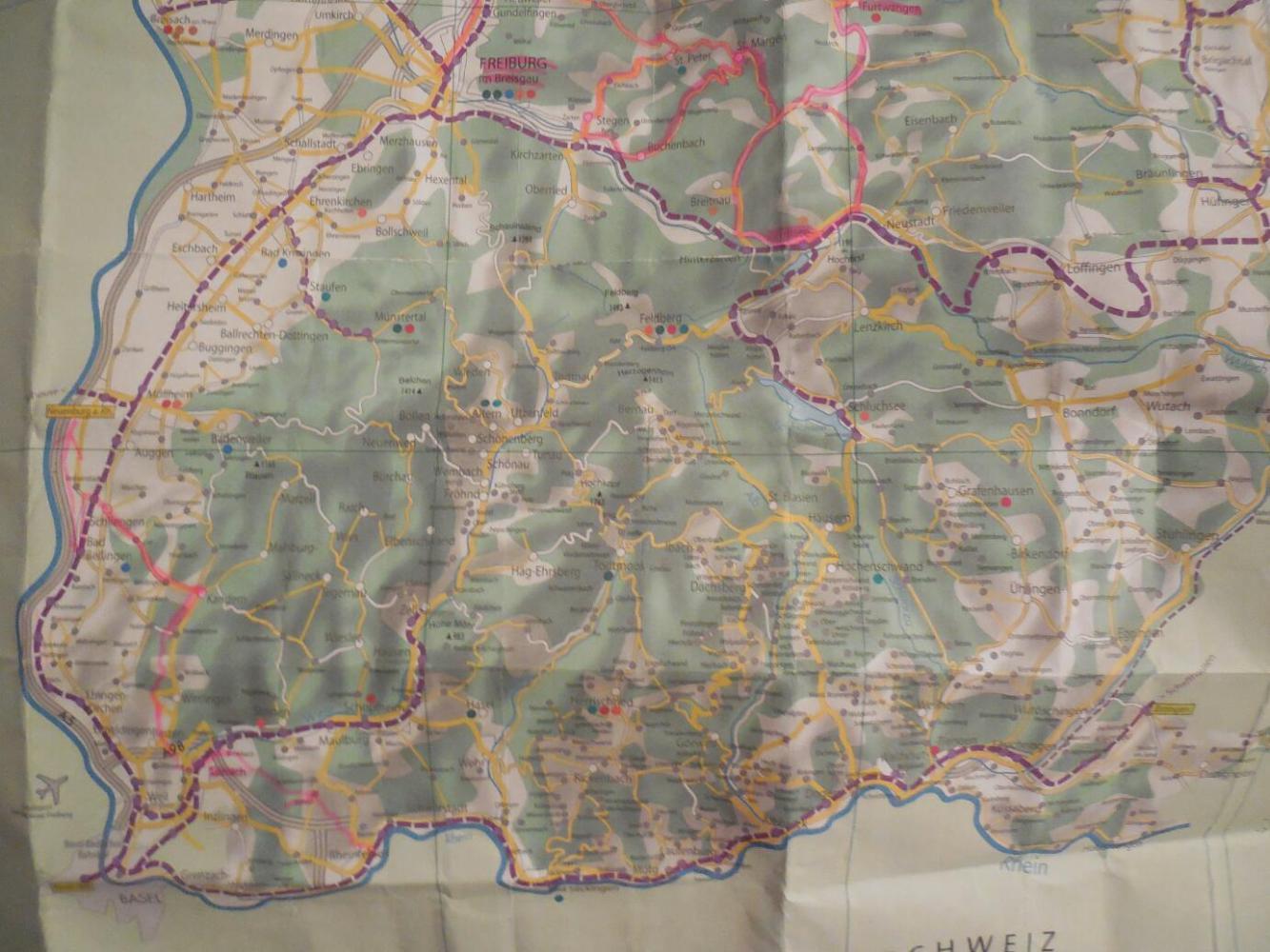 Our idea in planning this bit of the trip had been to slice through the Black Forest - just deep enough to see it, and not so deep as to be lost forever trying to push up the hills. So now we headed to Lorrach, Kandern, and Schliesen, which amounts to cutting out Basel, and then we would go in from the Rhine again a bit to reach Freiburg, which is styled in some places as the capital of the Black Forest.