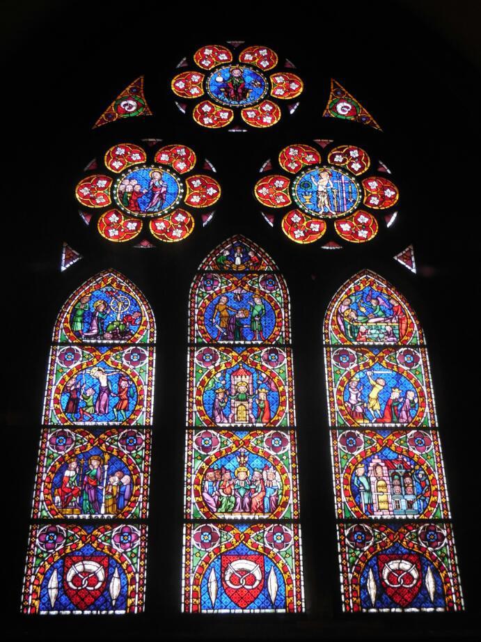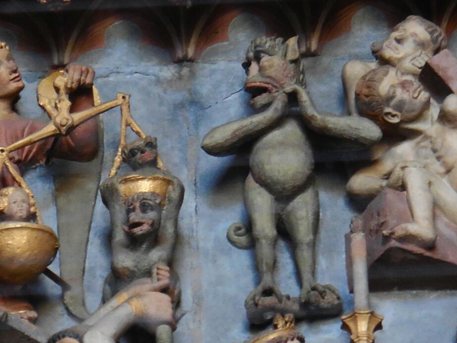 We were back in this section not only to use it as a parking lot, but to have another crack at a photo of the praying devil, under the central Christ figure. Inside, we wanted to see the stained glass windows again that had been sponsored by the craft guilds. The bakers' one, of course, was the main target. Hermann must have pointed to it yesterday, but I missed it. The Munster was still interesting, still huge, but without Hermann's enthusiasm, it lacked something today.