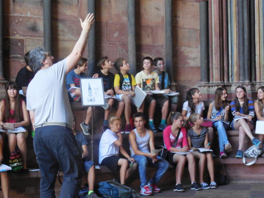 Back in the entranceway of the munster, we parked and locked our bikes. A teacher had a class of about 30 there, and he was holding forth at length about the myriad figures that adorn the arches over the entrance. I wondered how he had gathered enough information to talk at such length, and I wondered what the analytic content of his lesson might be. The students, meanwhile, dutifully copied it all down on their clipboards.