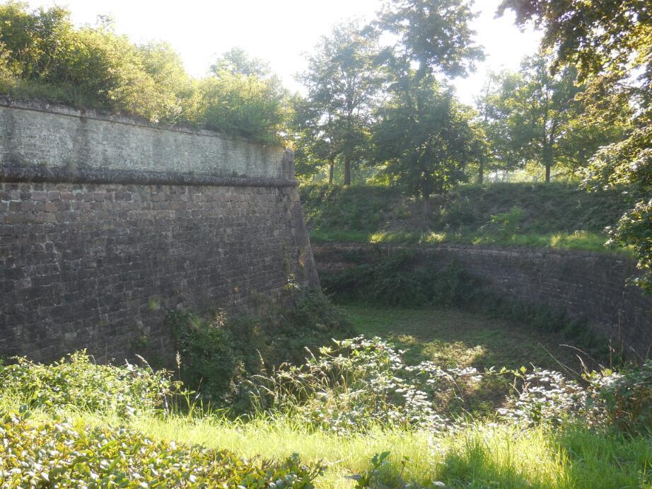 Colmar was close, but on the way was one other major place: Neuf Brisach. Neuf Brisach has a unique defensive wall, in the shape of a multi-sided star. It looks great on maps. But we cycled through one side and out the other, noting the wall but not able to see the pattern. I think we had a pamphlet with a lot of things to note in Neuf Brisach, but it was lost on as as we breezed through.