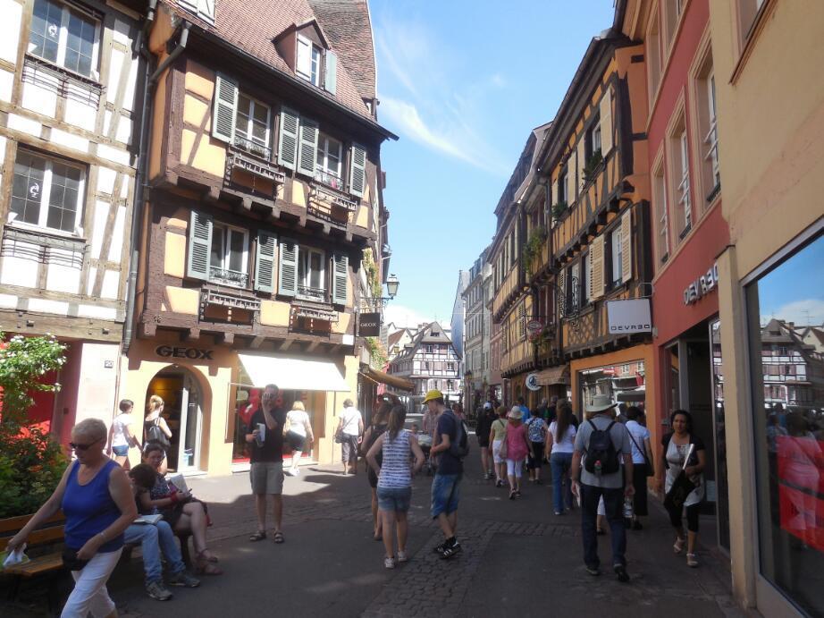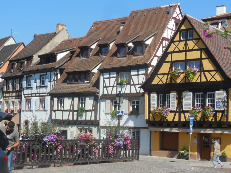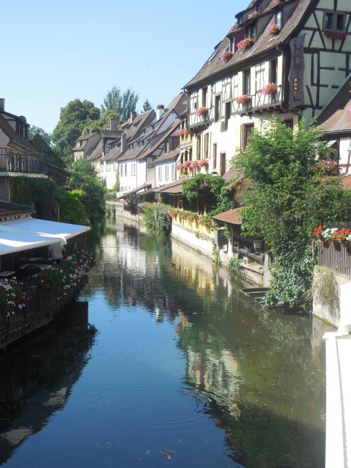 When we got to Colmar, we passed quickly from new (under 100 years old) buildings to a highly attractive old city, with narrow streets, alleys, canals, and tons of tourists.