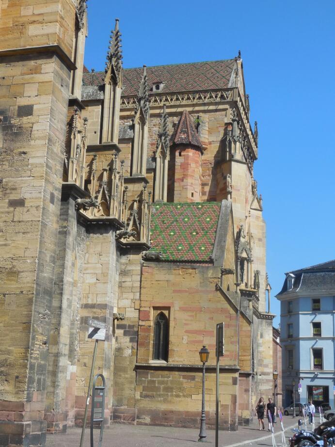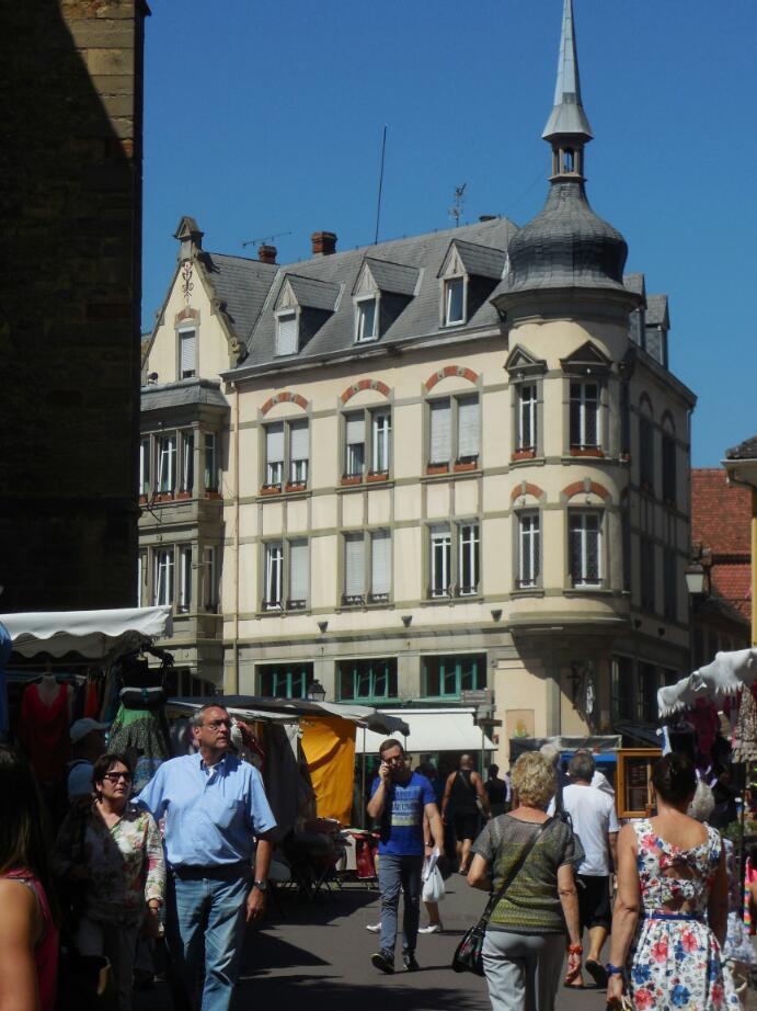 We are, of course, in the Alsace region. This is a place that has changed hands repeatedly between France and Germany. Germany certainly had it before 1900, lost it in WWI, grabbed it back in WWII (that is, annexed it, rather than simply getting military control), and of course, lost it again. French is the language here, but there are lots of people of German background, and I think, for example, that the architecture is a mix.
