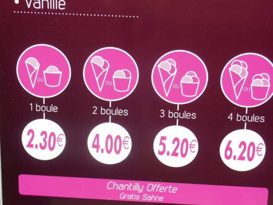 One aspect of current economics did stand out for us, though, and that was the price of ice cream. In Germany, the standard price for ice cream in a sugar cone is 1 euro per scoop. This varies, and we have seen prices as low as .70 and as high as 1.20. But here? The lowest was 1.40 and the highest 2.20. On such a hot day, pricing like this is brutal. There are no doubt 20 ice cream shops and sellers in town, and as we walked we looked at their prices. No way were we going to pay a 40 to 80 percent premium. No matter how darn hot it got! We held to this until we ran into the Swiss guys again. They each had a double - yes double. This cracked our resolve, and soon we too each sported an approximately $4.50 ice cream cone. Good thing we had straightened out those HSBC people!