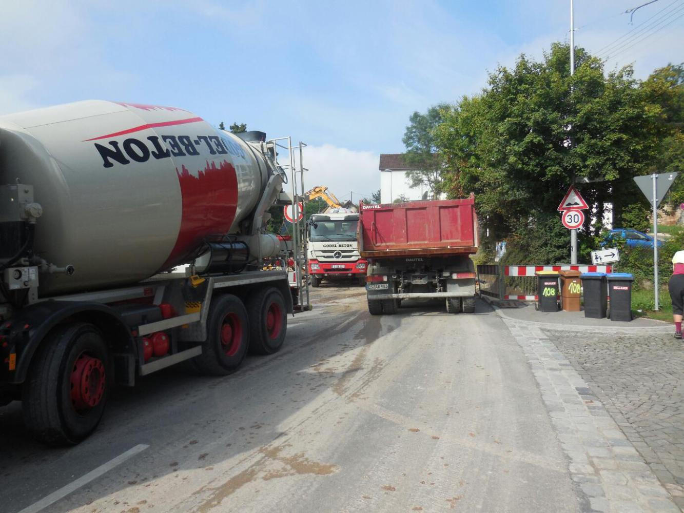 Anyway, whatever you call it, we followed it. Sort of. It's never as simple as it looks. There were still lots of little twists and turns, that the GPS had to iron out, by showing us where we really were. And there was construction to work around. We also found that , as usual, there were radwegs in the area. We followed one called the "museum weg" that was going our way. The only thing, radwegs, like GPS routes, think little of going over mountains or on wet gravel. So we did some pushing up, and some wading through as well.