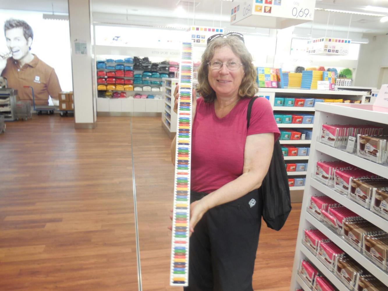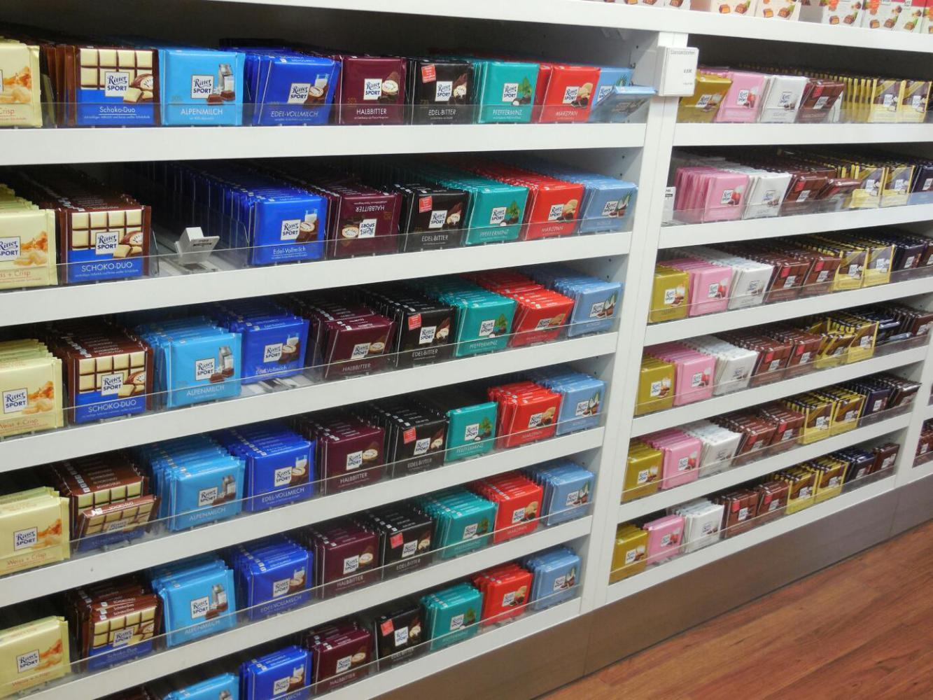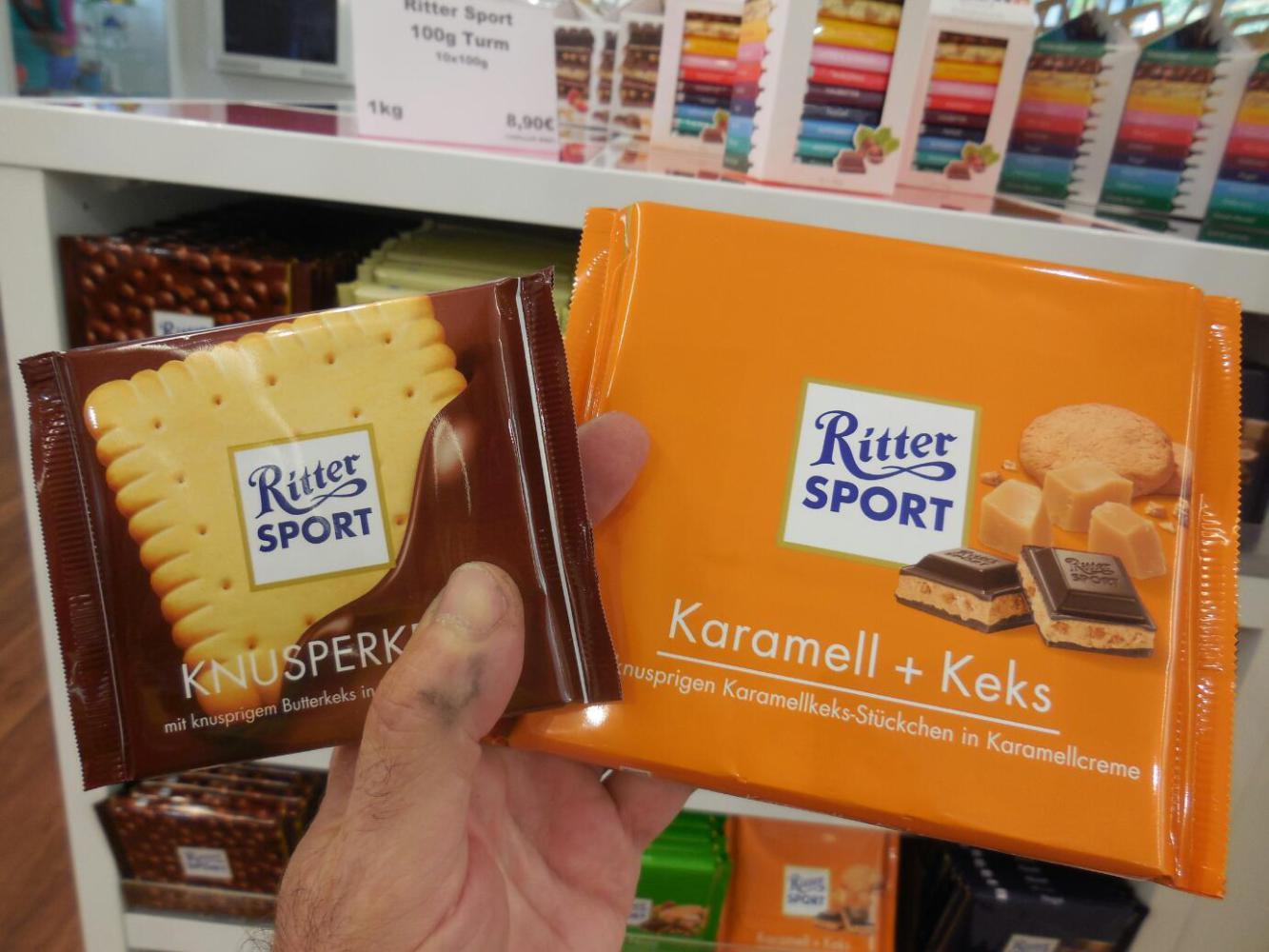 I got up just a little early, to have a quiet word with the GPS about Waldenbuch. Waldenbuch is the home of Ritter Sport, the chocolate company. In the past five years, especially, Ritter chocolate has become generally available in US and Canadian supermarkets. That has made for a reliable supply of good chocolate, in a sea of garbage. Ritter has the special practice of coming up with myriad flavours - twelve new ones per year, I think. Most of these are not seen in North America, so it's special to be see what all they have over here.