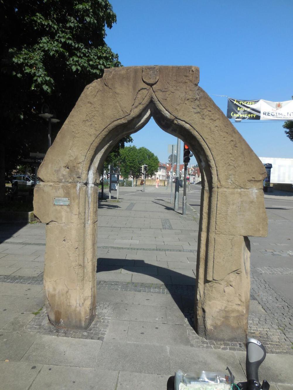 The river is very dirty brown, but that is surely because of a lot of runoff. Still, it does not contribute to any idea of cycling a pristine area. The urbanization is also fairly hidden from the cyclist. At one point (Cannstadt) a road at right angles to the bike path gave a glimpse of what looked like a street market. So we headed down it for just a bit. There was not really much of a market, and at the tend of the block - a surprise, in the form of full blown urban scene, with traffic and trolley cars. etc. So yes, the bike path by the river is a quiet corridor.