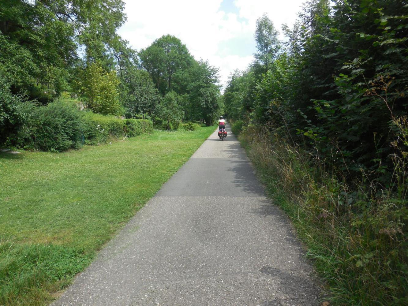 It took a while for this to come true. Yes, the city faded away, but the path remained sort of blah, hemmed in often by low trees, or passing through uninspiring bits of towns.