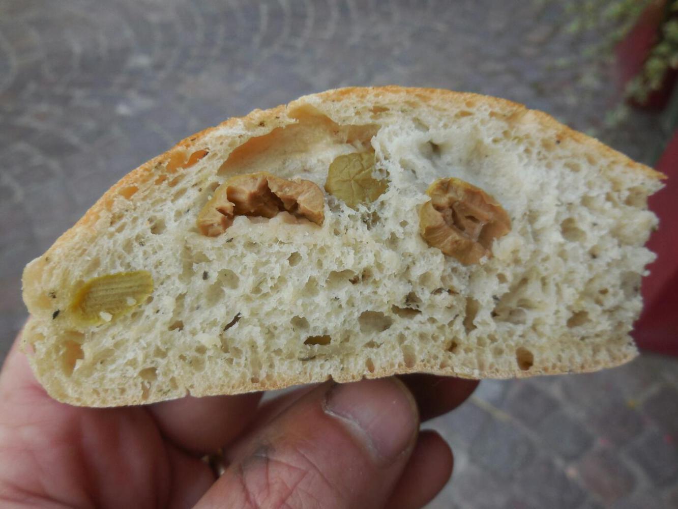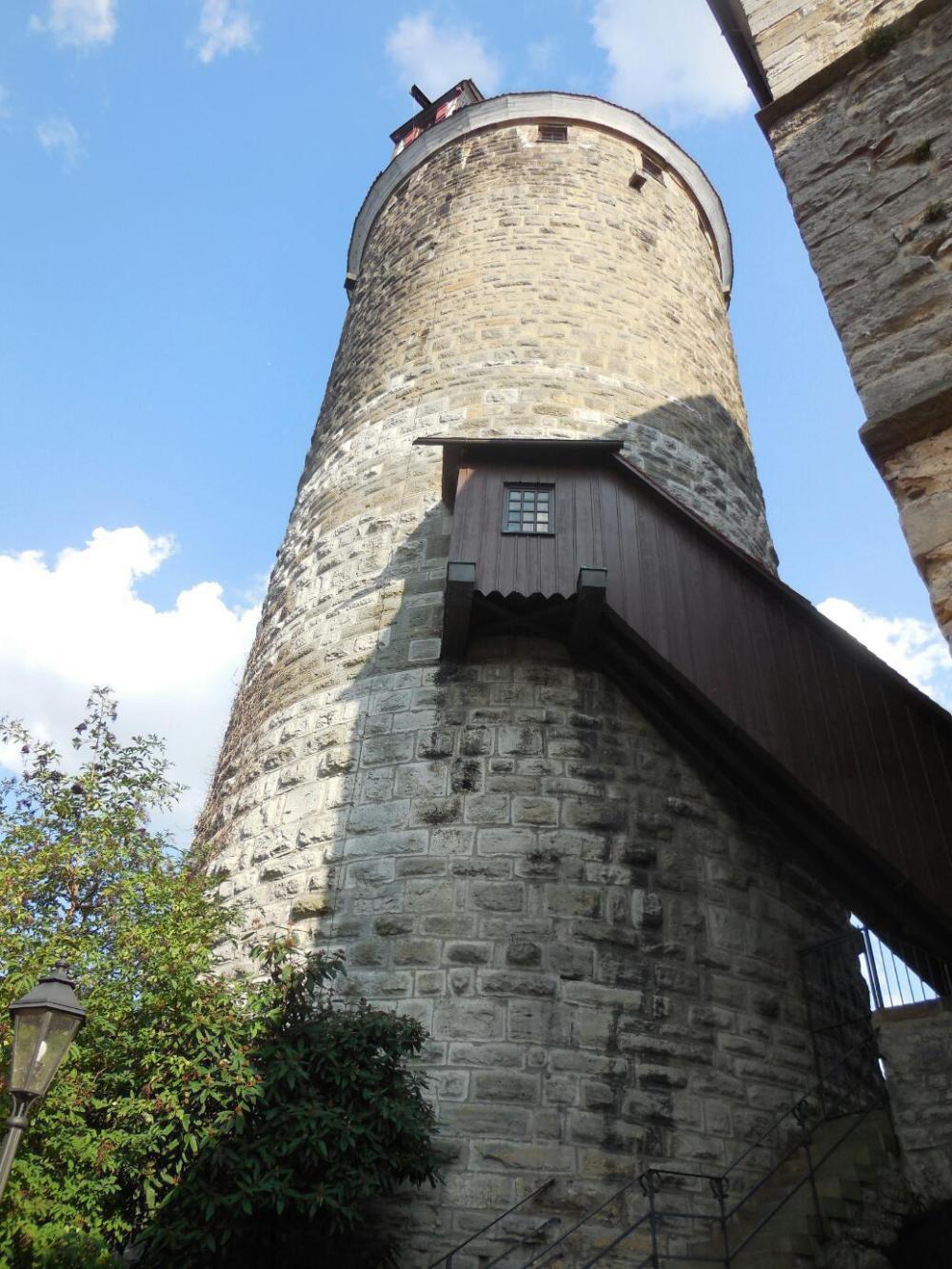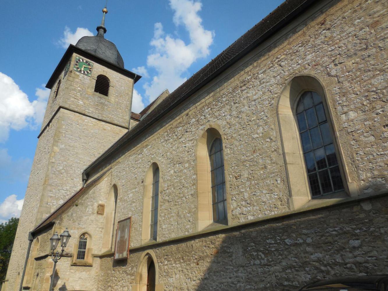 We walked up to the church, which is approximately 14th century, but unfortunately it is a Protestant one, and so lacks any pink cherubs or similar interesting elements. There is also a large tower near the church, which is from 1220. All this was fun to look at, but I was now weakening from lack of food. We have stuff in our bags, and a stove, but the chalk board at the Hirsch had some great things on it. Dodie went for her new favourite (learned at Jurgen and Suzanne's) - spaetzle with cheese and onions, while I got what I normally eat at home: grilled chicken and salad. The chicken, though, was much better made than I can usually do, and the salad also had watermelon, honeydew melon, and pineapple. The part of the meal that made the most impression, though, was the bread that came in a basket. It was an olive bread that had fresh seeming green olives in it. It was really super. Sticking with old habits, we squirrelled away most of it - to be brought out on some hungry and remote part of the trail ahead - assuming you can ever find a hungry and remote bit of Germany!