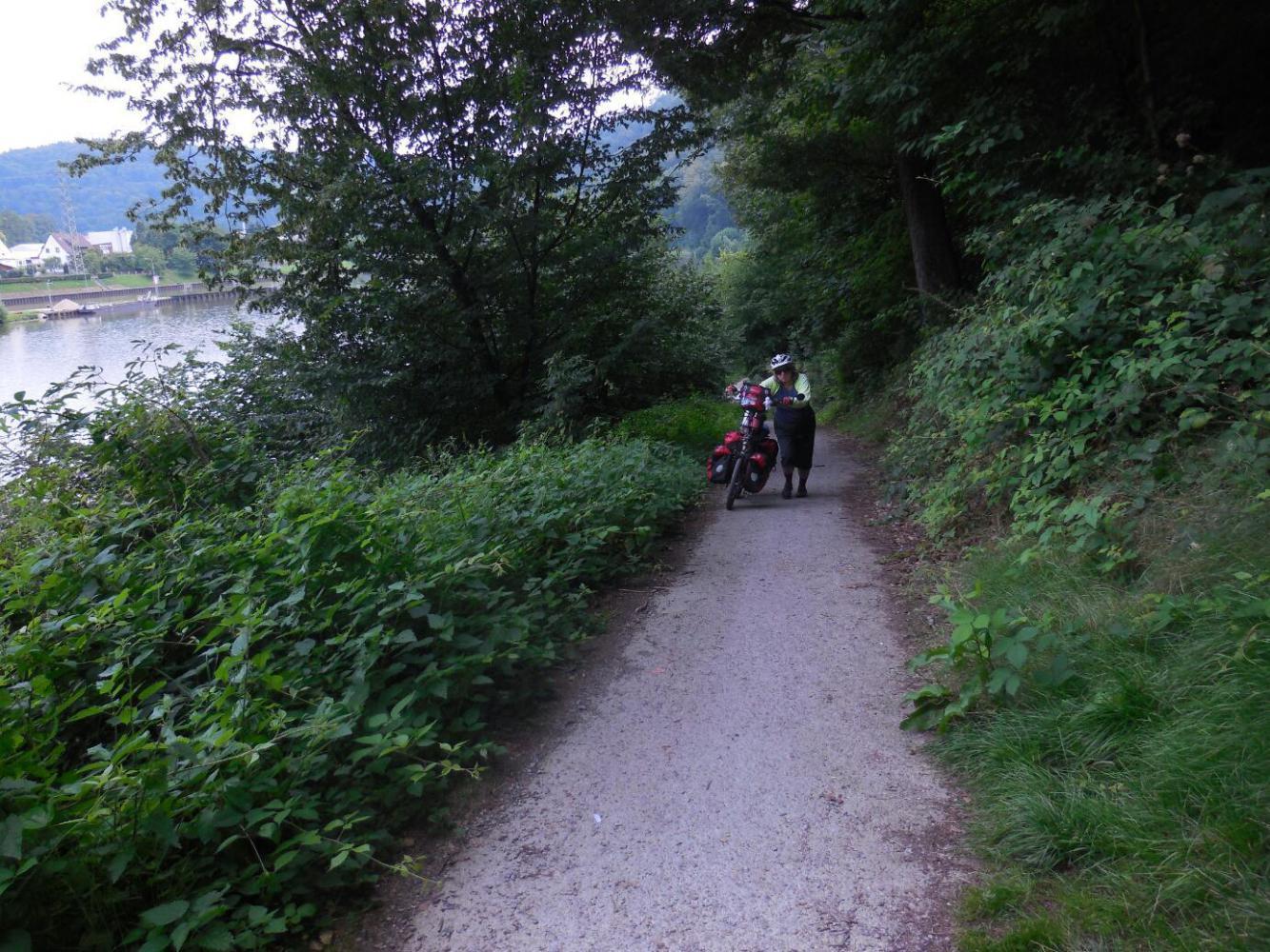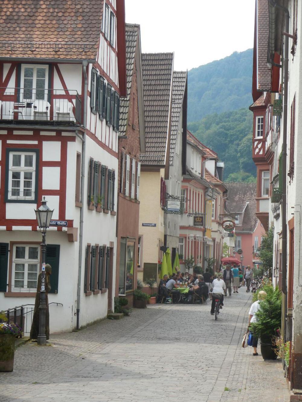 Today was going to be our day for finding those beautiful towns I had been thinking were along the Neckar. There certainly are a lot to choose from. They have slightly confusing names, like: Guttenbach, Neckargerach, Eberbach, Neckarsteinbach, etc. Some, like Guttenbach, are clearly small and pretty plain. The radweg passes through, and you can get a fair idea of what the town is like. Others, like Neckargerach, are a little larger, and a bit of wandering may be needed to scope the place out.