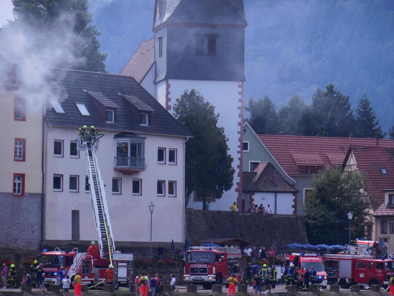 Neckargemund was another town that looked quite interesting, as we passed by on the opposite side of the river. Suddently it was even more interesting, as we noticed smoke pouring from a large building next to the church, and fire trucks all around. It turned out to be only some sort of drill or demonstration, and soon there were announcements, maybe explaining what was going on. It sure fooled us for a bit, and we are susceptible, having read so many town histories that include great fires.
