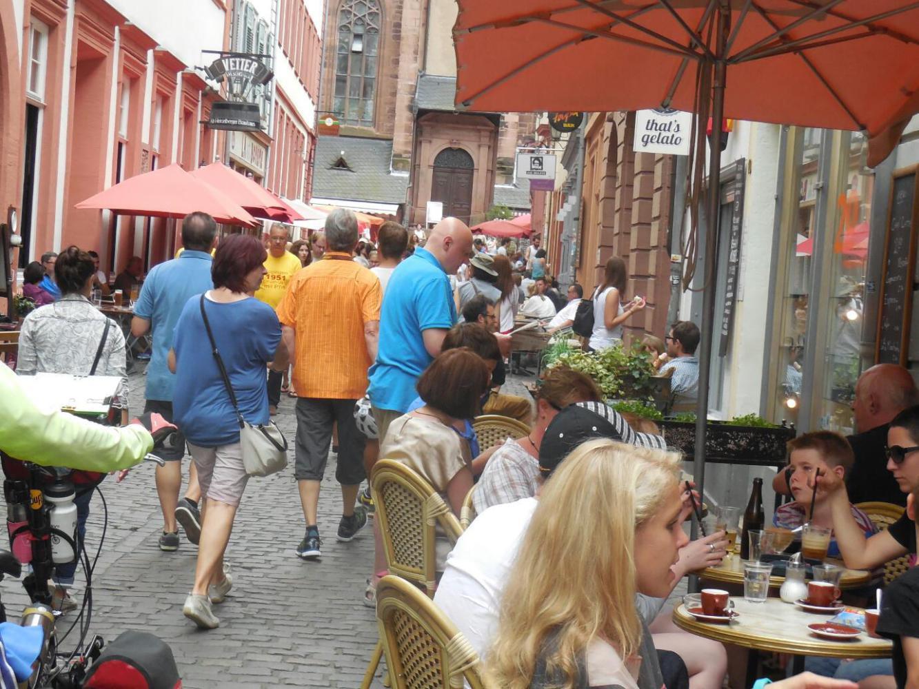 Now we come to Heidelberg. Heidelberg has several distinct parts. First, there is a giant schloss above the town. Then there is a hauptstrasse (high street) that is a couple of km long and is packed with tourists (as is the market square and the rest of downtown). Finally there is a major university, and, we assume, a city where real people live. Our friends Erika and Marvin Paxman have just visited Heidelberg, and focused on the schloss. We recommend their account of it - CLICK HERE.