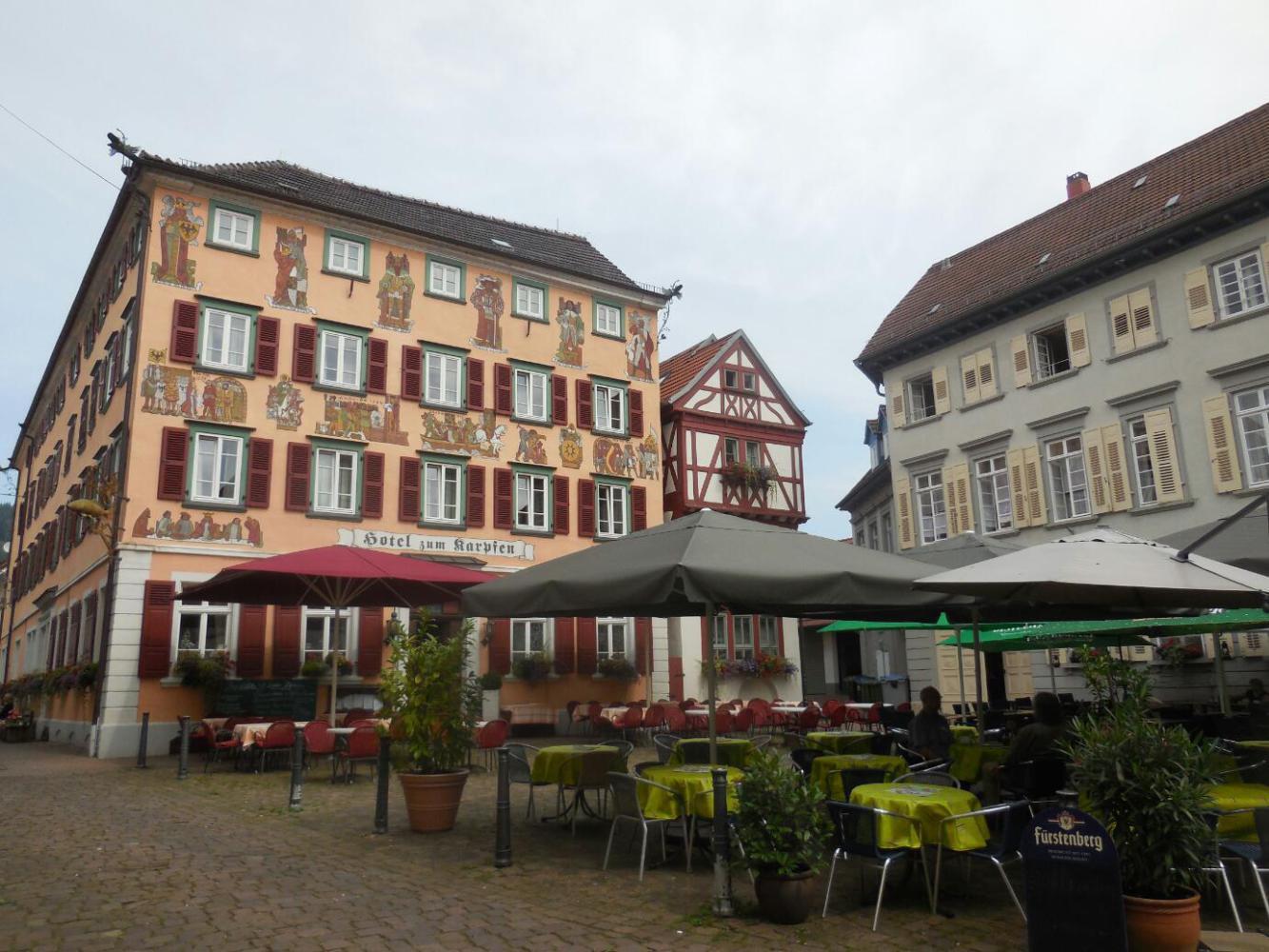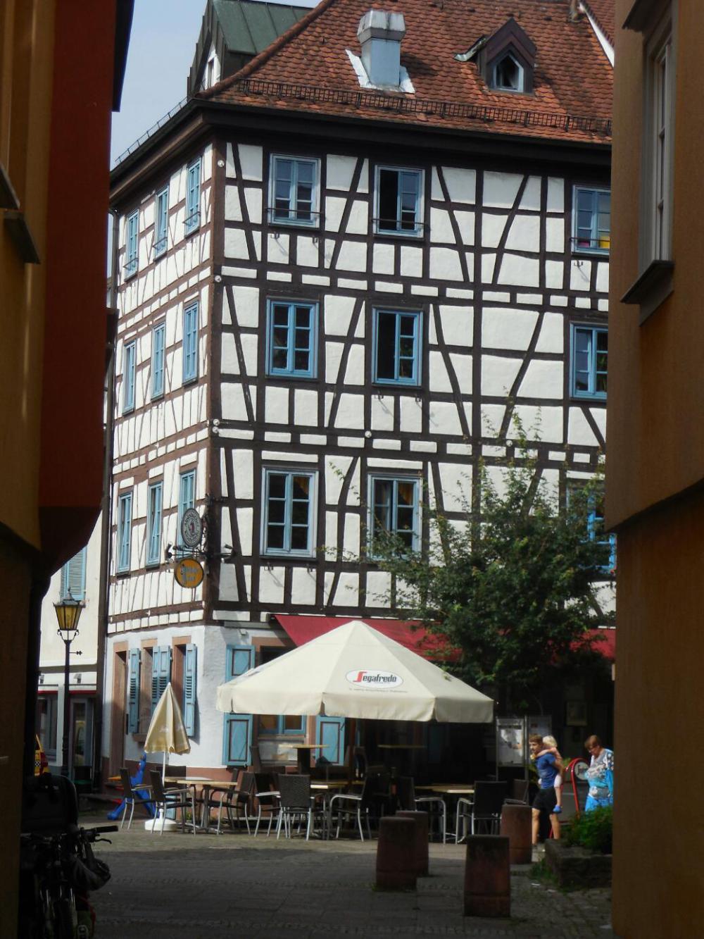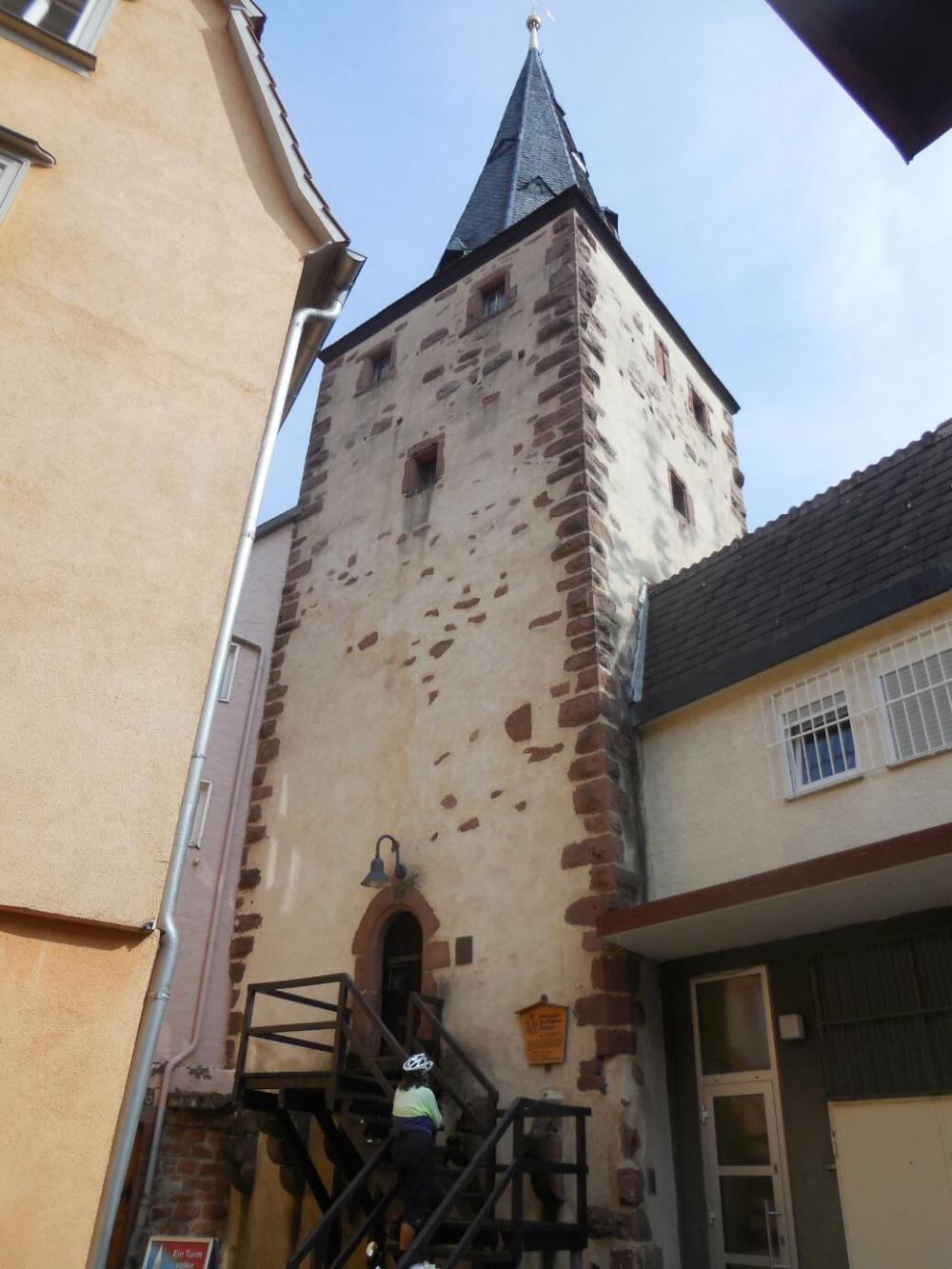 Anyway, we felt sort of an obligation to try harder to find the good stuff on the Neckar. So instead of zooming by the next major town (Eberbach) we went in for a closer look. From a distance we could see a church with twin towers, and another single tower one. There was a pedestrian district too, and an ancient tower. It was a good try, but one church was rather plain and the other locked. The pedestrian zone was scattered and did not contain too much of interest, and certainly no market, and pedestrian zone or not, it had cars trundling through it.