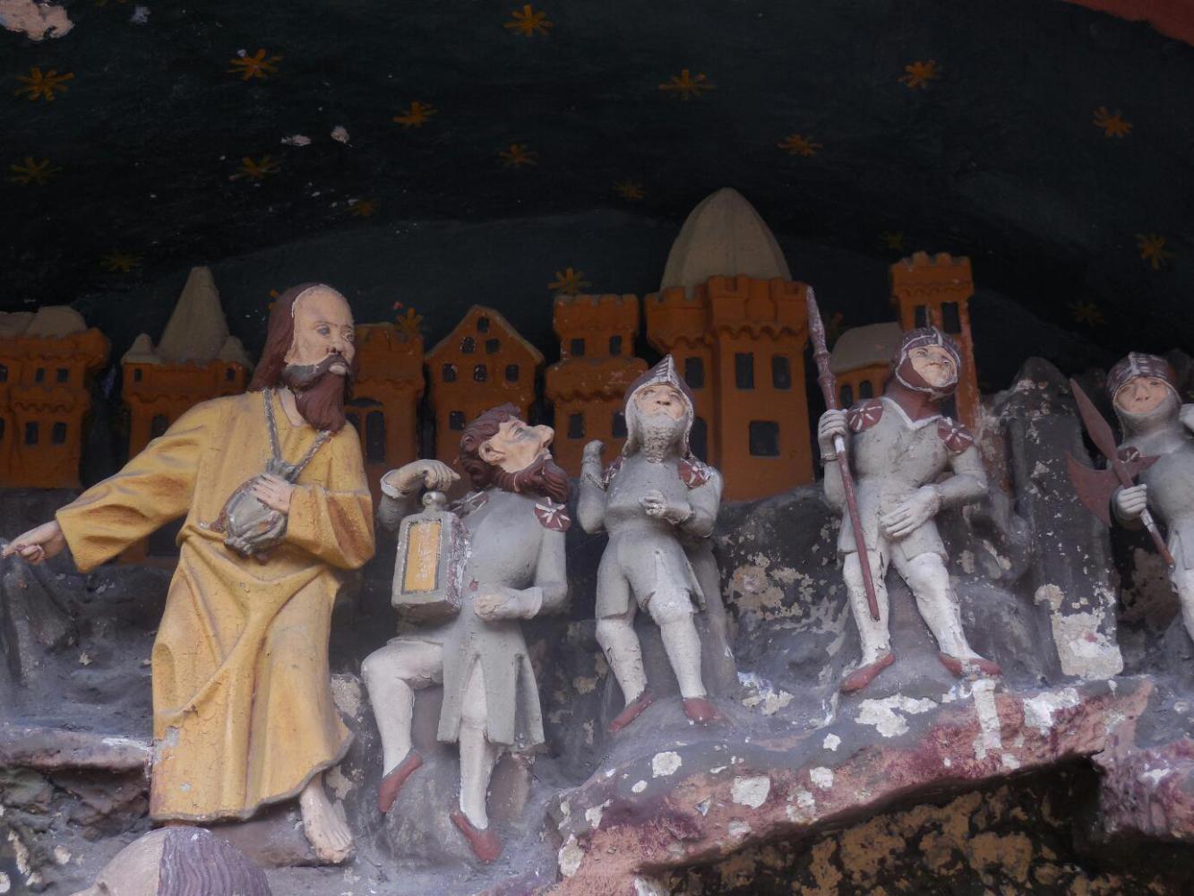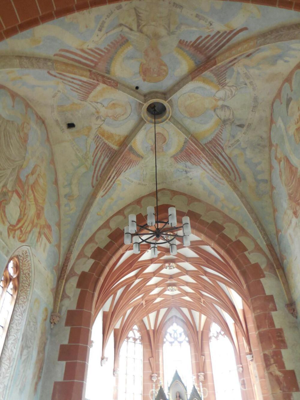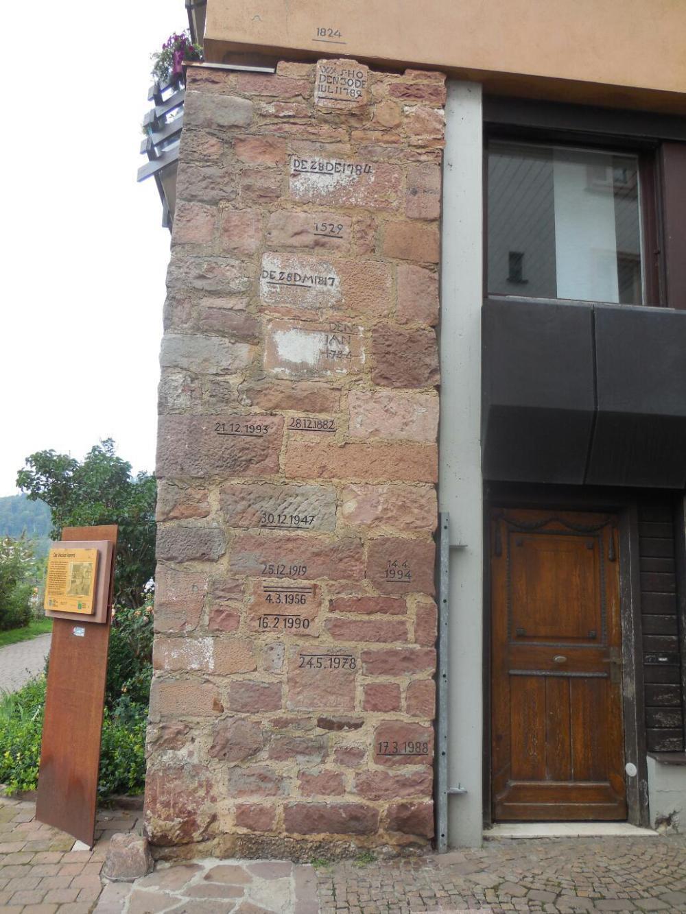 Well, Grampies 2012 mentioned Hirschorn, coming up. It looked like a beautiful town to them, but they blew by it. So here was a chance to take the Grampies' advice, and also to cover something they sort of missed. Hirschorn is at a place where the river loops tightly, creating almost an island. The neat stuff is not on the almost island, but up a hill on the shore opposite. There is however an interesting chapel on the island part. It is the St Nazarius and Celsus cemetary chapel. This has a fairly quirky diarama set into an outside wall, and some very old frescoes inside. Old, faded frescoes always seem like good finds, something like cave paintings.