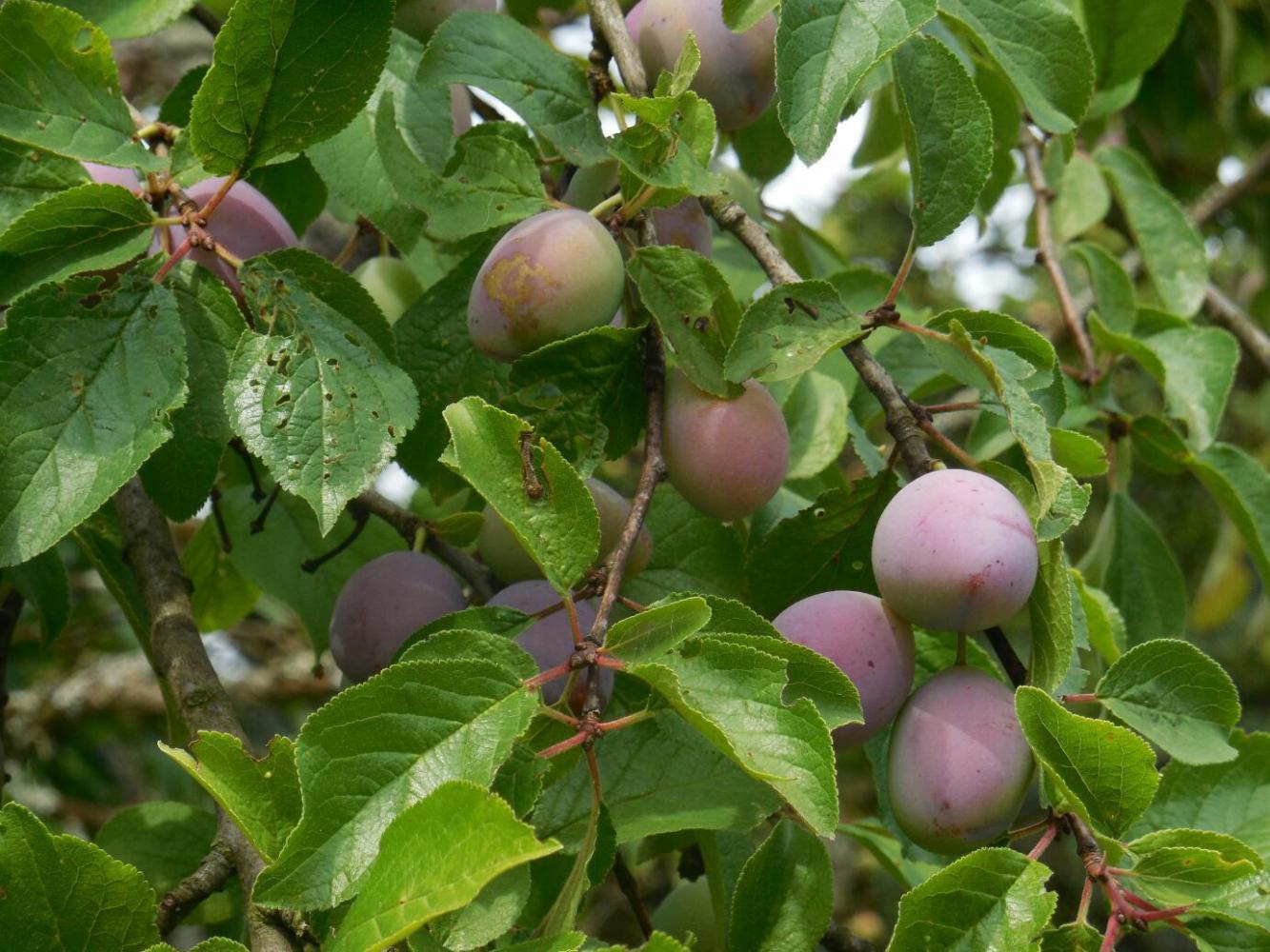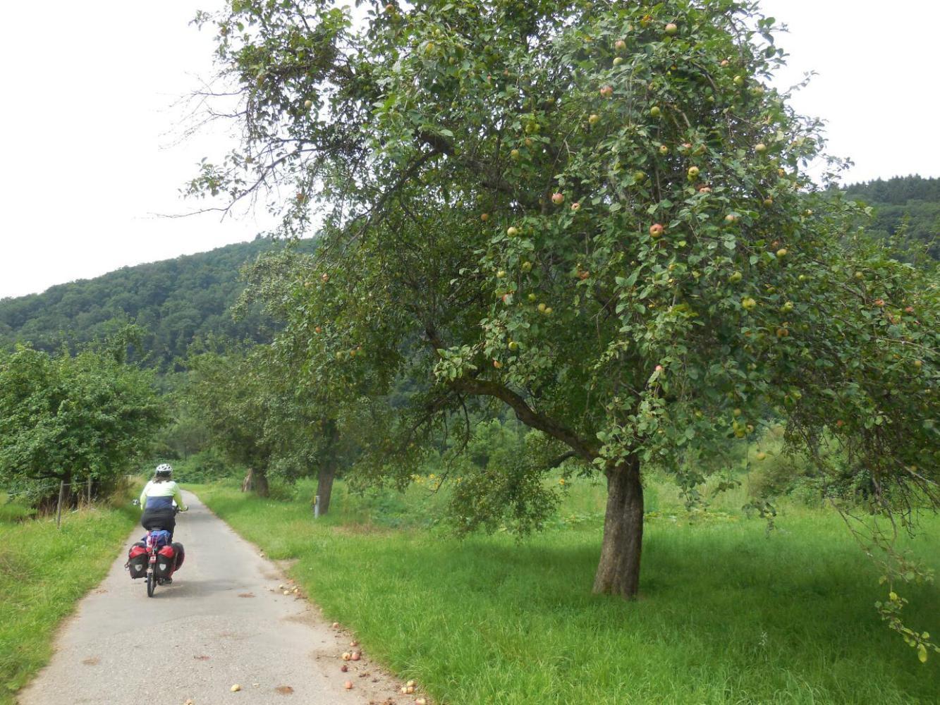 As in the rest of Germany, there are many fruit trees, often seemingly not exactly part of a farm. Here there are mainly apples, which certainly are not ripe. Sometimes we do find a pruple plum tree that is ripe enough to try one or two. Not these, though.