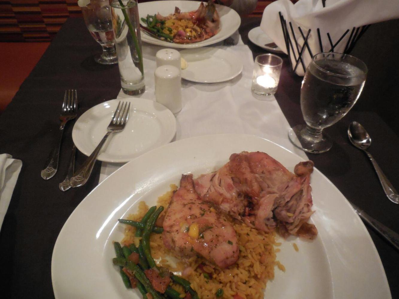 Dodie came back, not with the bike, but at least with some (very chintzy) $6 meal vouchers, and very importantly, a voucher for one night at the Doubletree Hotel. This would give us a chance to rest and regroup, see where things would be by tomorrow and make some decisions.