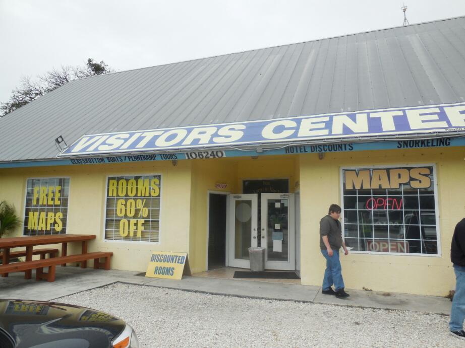 In desperation we stopped at a Tourist Information. Dodie predicted thay would only know about glass bottomed boat tours. Correct, But I did get a great Key West sticker!