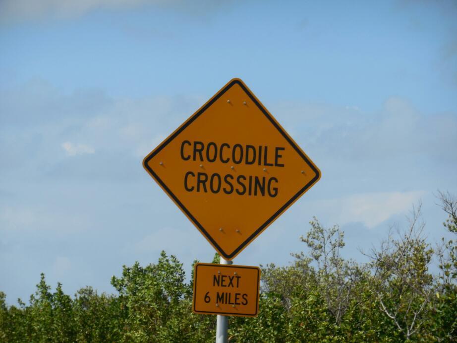 At the top of Key Largo is the road to Florida City and Homestead. This heads through mangroves and then the beginning of the Everglades. It is dead straight for most of its length, and fenced on all sides to keep the crocodiles out. Yes, crocodiles. We headed out on the shoulder of this thing, which has no stopping spots or support of any kind. We did have enough water on board, but the temperature peaked at 37 degrees. The sun was from the left, and our left legs threatened to fry.