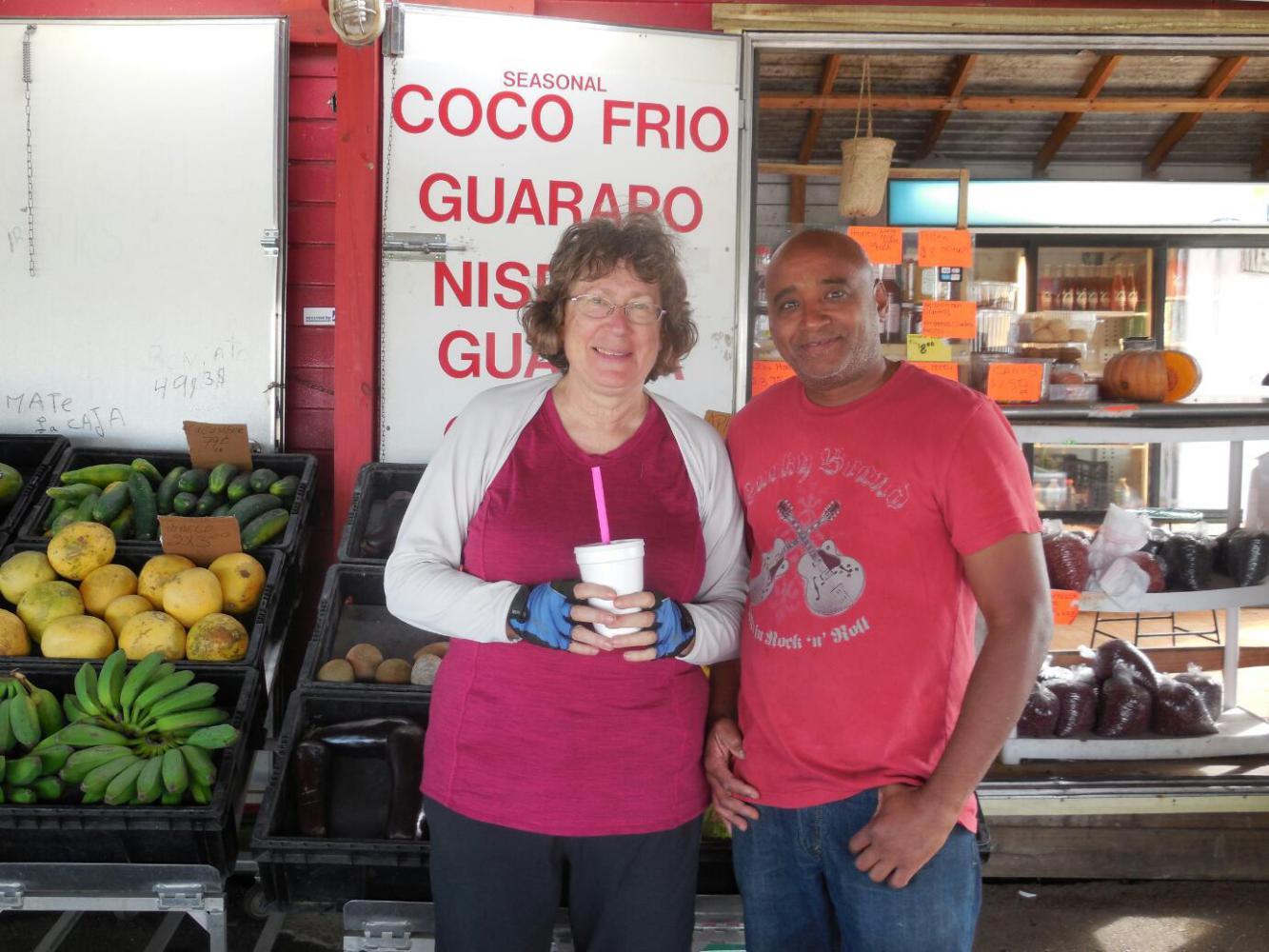 The stand had all that, but also fruits that we had never heard of, much less tasted. Asking dumb questions about these brought us to the attention of Jesus, behind the counter. Naturally, our goofy bikes - or around here, any bikes, were the subject of lots of explanations by us. Jesus had a bit of a personal interest as well, since he had bought a bike at Christmas but was yet to really use it. It is the dangerous roads between his house and work that are holding him back. Florida still has a lot of work to do in this area.