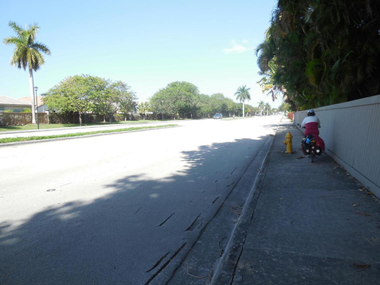 Jesus now warned us that we were heading into some very dangerous traffic should we continue on 997. He shifted us two miles east (off route) to a safer northbound road. This new route opened up some dramatic vistas of a different kind. Huge tracts of what we assume had been Everglades were newly settled with suburban construction and box stores. Just stating it baldly like that belies the scale. Here, Home Depot, for example, had taken a bare perhaps 10 acre site and popped down one of their standard giant things. Now multiply that by Walgreens, Publix, CVS, and dozens upon dozens of other famous names, all brand new faux Roman (or something) architecture in some cases, or their standard designs in other cases. Each piece looks like it was plunked on the Go board or like some sort of chess piece. This includes the huge parks and schools. The high school, looked like it just fell off a drawing board and on the way called out "Supersize Me".All this infrastructure was joined by boulevards of three lanes each way, and supported km after km of single family suburban developments. All had impressive landscaping and some surrounded artificial lakes.Yikes, when America looks poor, it looks really poor. But then suddenly it turns around a lays billions of dollars onto a flat landscape and creates - something?
