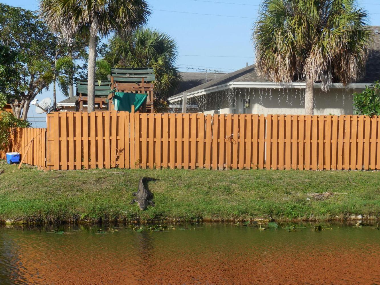 As we cycled, Dodie mused about why they could not build a fence to fence us in at night and allow a tent to go down. After all, they do this with bears in Banff Park. As we approached the gator park, we could see that the staff residences were fenced. So yeah. Dodie also spotted two gators up against those fences. Yikes.