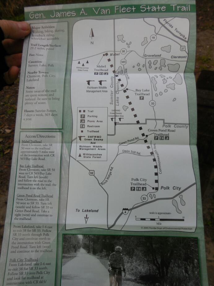 From the Publix we began the process of turning this way and that on smaller roads, heading for the Teco Auburndale trail, which ends at Polk City. The trail and the way to get to it had been set out for us by Google Maps, and with a touch of help from our GPS we found it easily.