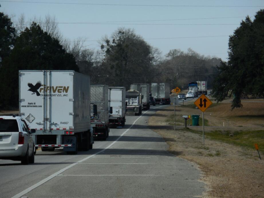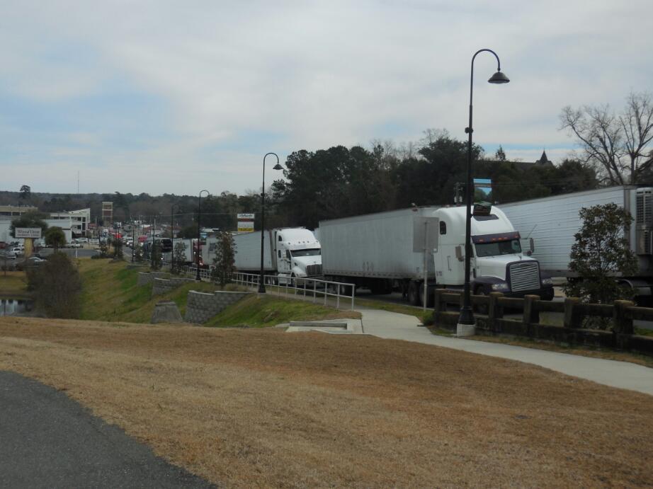 An exception was Marianna, where the shoulder disappeared and a sidewalk did not pick up the slack. Meanwhile, both lanes were full of charging traffic, including an incredible number of big trucks. Dodie's approach to this is probably the accepted one: take the lane. My feeling is that holding up a lane of dozens of trucks for kms is not on. The risk I see is that an inattentive driver justs takes you out, straight on. Or the variation - the driver just behind you sees the situation and hangs back, but soon is able to move over to the left lane. Then the driver that was tailgating him steps on it. ooops.