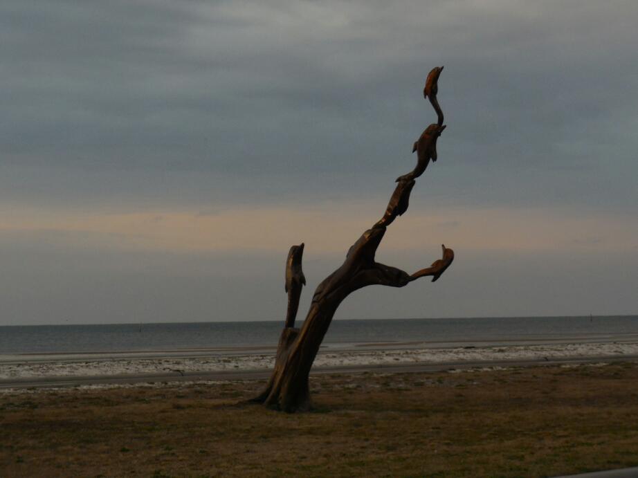 We left our Sunday school, as usual, with no trace that we had been there, except for a note and a small donation. We resumed pour course alongside the Gulf, with sights that had now become familiar: On the left we had that pristine white beach, and the Gulf itself. Today, as yesterday, the water was as placid as a lake. On the right were some nice houses, perhaps newly built in last years, and some situated high enough to have survived the storm. However, the most common thing was the vacant lot, with only the old lives oaks remaining. All along, each of the vacant lots has a for sale sign.