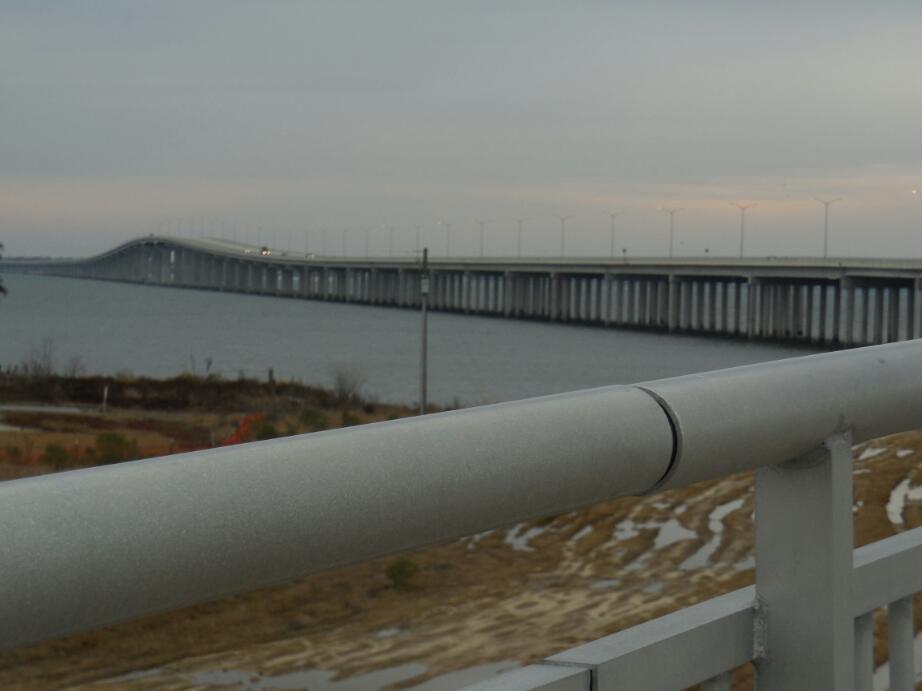 So here we were, finally understanding the area and situation we were passing through. That would be the time for a change, and the change came with the big bridge over and to Bay Saint Louis. This is a new bridge from 2008. The old one had the road bed lifted by Katrina, leaving only the pylons. The temperature never rose above 5 degrees, and on the bridge the very brisk wind produced quite an impressive wind chill. Actually, I was wondering if this wind could blow us off the bridge. There was no sign of the bike wheel lifting, so despite any fears it was actually quite safe.