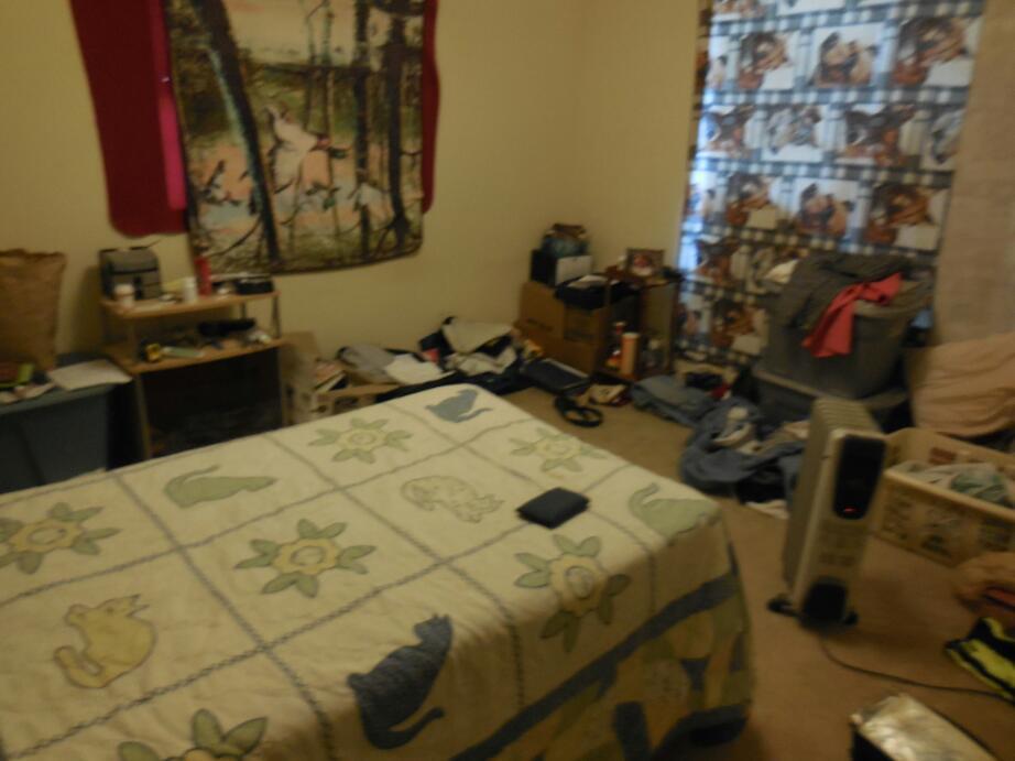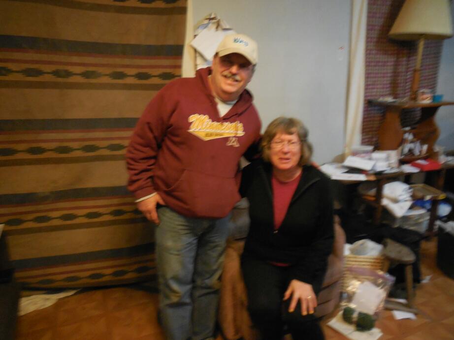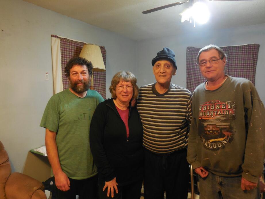 We cycled the few blocks and arrived at a small house. This was actually the house of Sam, a disabled man with bone cancer. Our benefactor was Bruce, Sam's friend, who is living at the house and caring for him. The level of housekeeping reflected two fellows living alone. We passed through some hanging blankets helping to keep the main area warm and met Sam. Two electric space heaters were trying to keep the house warm.