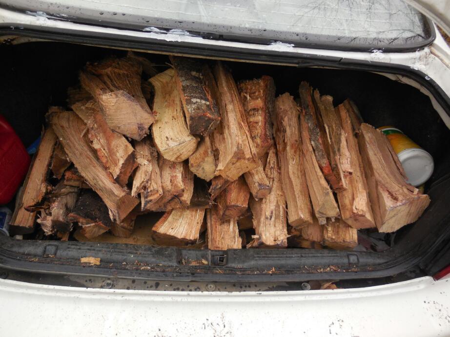 The firewood people were not an elaborate operation, but simple folk. They would go to homes where trees had fallen and salvage them, returning with the wood on a trailer to split and stack it. I chipped in the $30 cost of a trunk full. Bruce felt this was cheap, compared to buying a few sticks at the handimart.