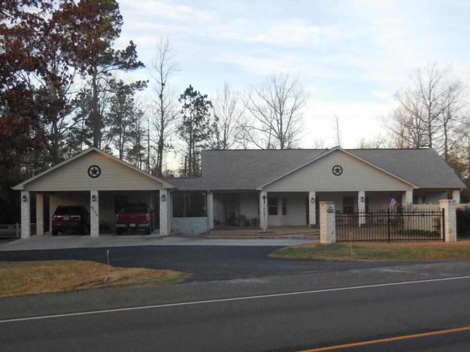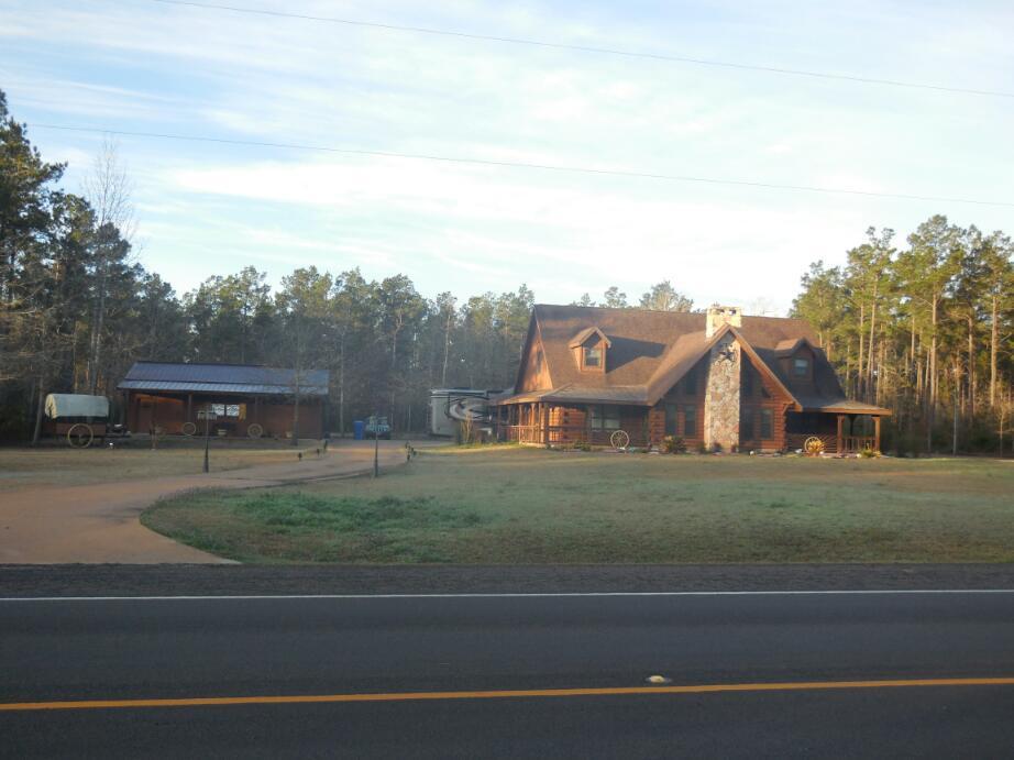 The wooded area had a few houses, spaced about 1/2 km apart. These caught our attention because they differed from the trailers and tumble down places we had come to expect. Rather the first one struck us as rather representative of the standard American house concept: Single detached, with one car and one pickup truckeither huge nor tiny. And because this is Texas, it had five lone star decorations, an American flag, and a cowboy hat motif address sign. The next one along was a little grander, and featured many wagon wheels, one Lone Star, and two large RVs stashed in the back.