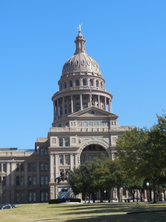 As impressive as the capitol building, are some of the towers of the downtown. The most notable is the Frost Bank tower, which is white and topped with interesting shapes. Unlike in cities like Vancouver and Montreal, the downtown buildings do not form canyons here, and there are no rivers of racing traffic flowing within canyons. Rather, the buildings seemed widely spaced and the traffic sparse. There was not a lot of retail activity, and no crowds of walkers. Not even vaguely like New York. Rather there seemed to be a fair smattering of people standing aimlessly around, and otherwise - no one was home, so to speak.