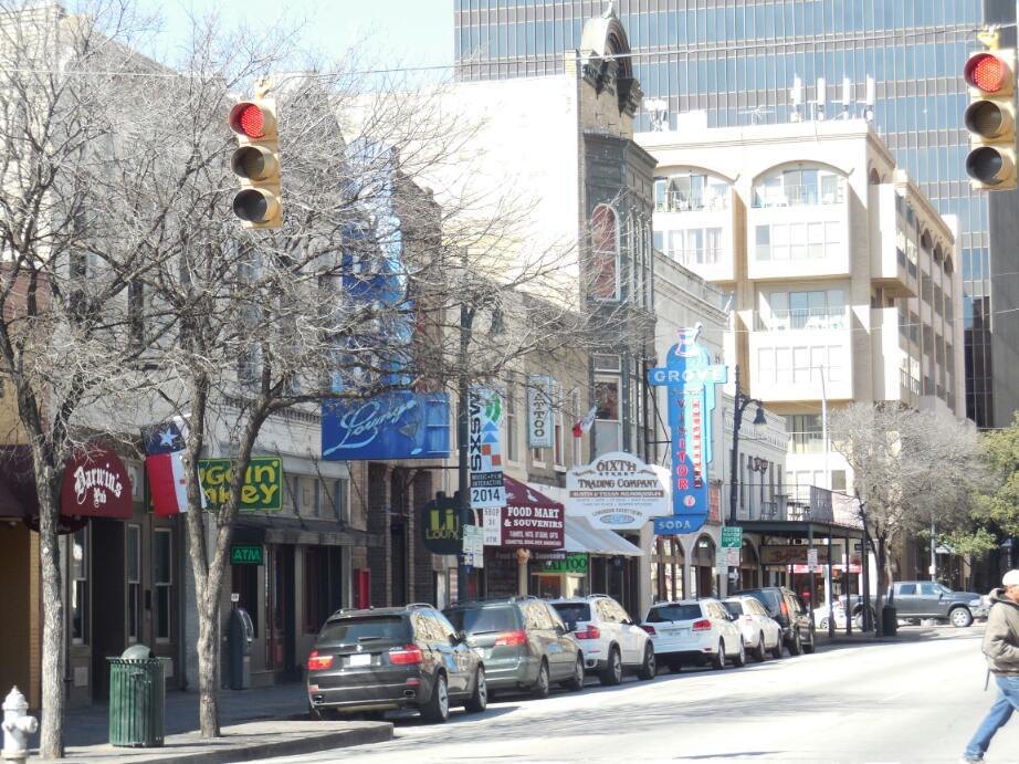 We rode down 6th and snapped a few photos from the bike. The street seemed mainly to house bars.Early morning on a Thursday did not reveal the glamour we had read about, and of course the street was not closed to traffic and filled with people. Actually it was filled mainly with beer trucks making deliveries.