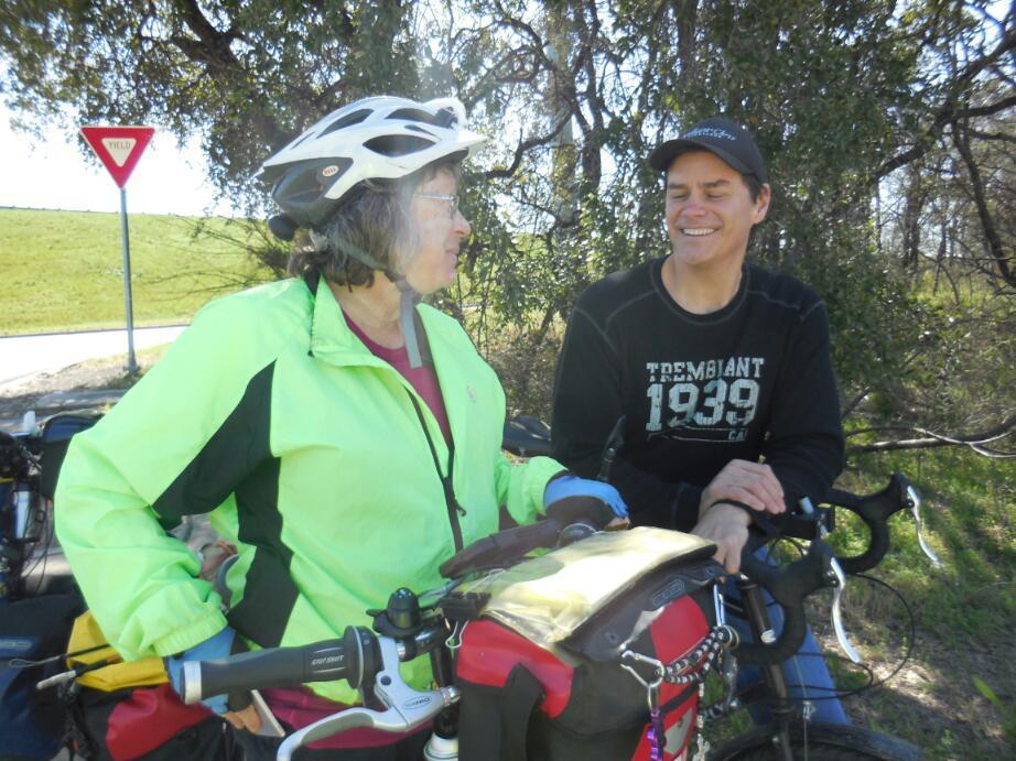 When you can not run the GPS continuously because of power limitation, and when a route has no on street indications, it's easy to miss a turn. we had done that and then turned on the GPS and done a U turn but maybe still lookedpuzzled. so this attracted the attention of Bob, a cyclist who had done the southern Tier two years ago and who works nearby. Bob cycled up to us on his Long Haul Trucker, with one Ortlieb bag on for local use, and gave us some further guidance about how to reach our short term target. In fact Bob lead us part way. He then stopped to double check his recommendation on his iPhone, and here another young man appeared. He had noticed that we were obviously on tour. Last year, he cycled from here to Montana (Bozeman). So now we had another instant cyclists party! when Bob confirmed the way, we cycled off, leaving him and the other fellow to chat. I bet they were glad they had run into each other this way.