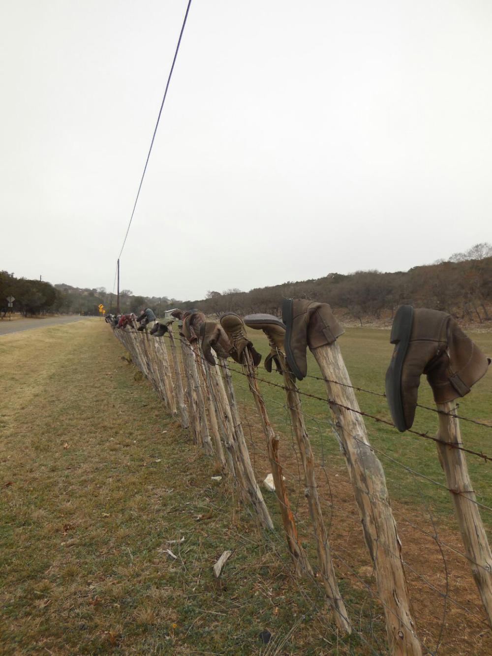 Another sight was Boot Hill, a km long area in which fence posts on either side of the road are hung with pairs of cowboy boots. Many are very fancy and some look pretty new. So far, we have not uncovered who started this, or why, or who owns the fence.